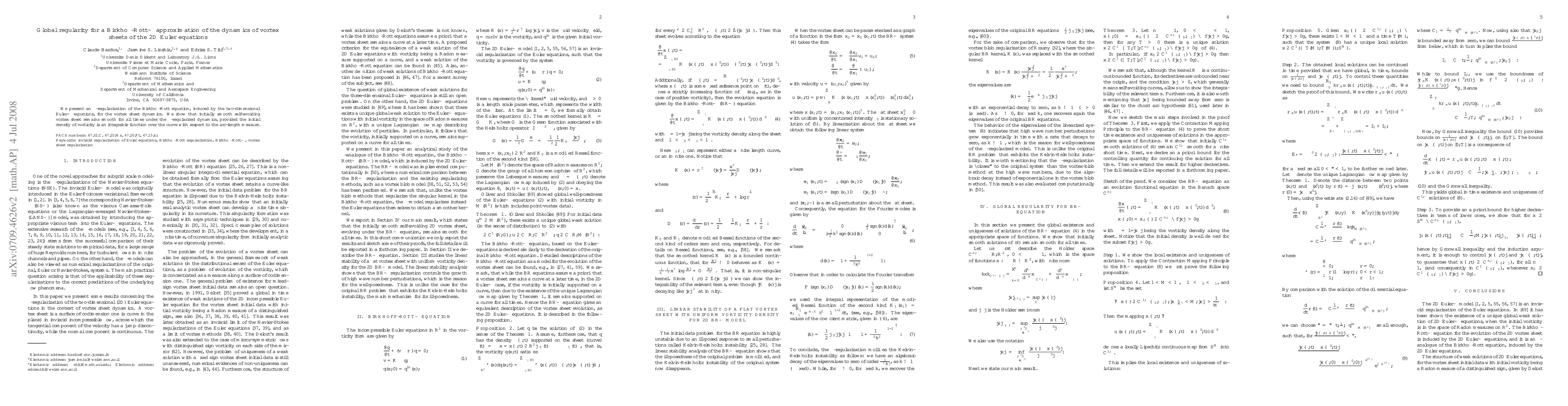 Summary: This paper introduces an alpha-regularization of the Birkhoff-Rott equation for vortex sheet dynamics in 2D Euler equations, proving global regularity: initially smooth vortex sheets remain smooth indefinitely under the regularized dynamics, given certain integrability conditions on the initial vorticity density.