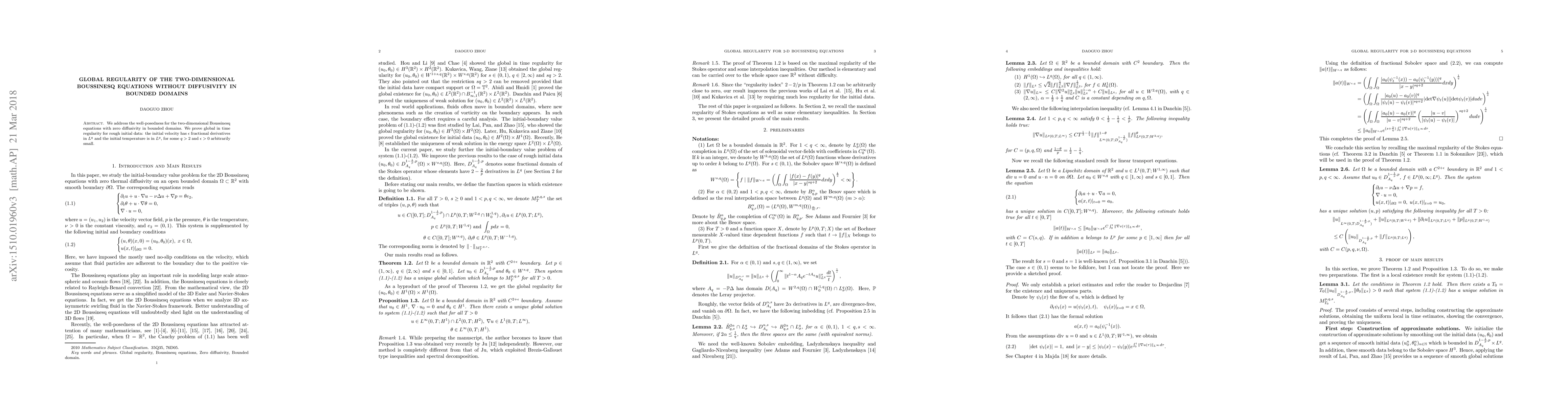 This paper proves global regularity for the two-dimensional Boussinesq equations without diffusivity in bounded domains, showing that solutions remain smooth over time even for initial data with small fractional derivatives in $L^{q}$ spaces.