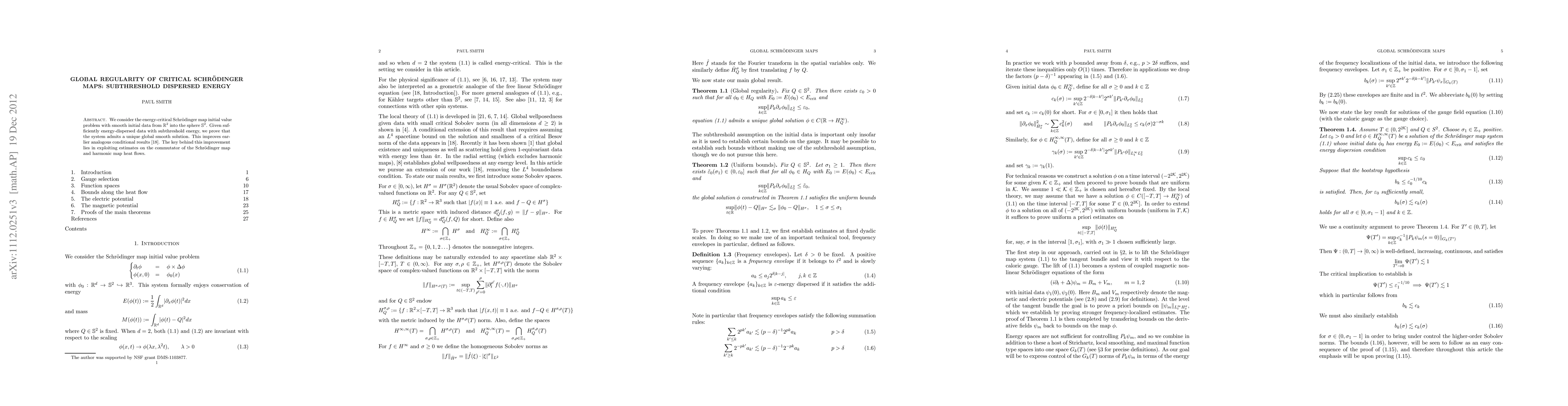 This research proves that the energy-critical Schrödinger map system, starting with sufficiently dispersed and subthreshold energy data from R^2 to the sphere S^2, has a unique global smooth solution. The improvement in earlier results is attributed to new estimates on the commutator of the Schrödinger map and harmonic map heat flows.
