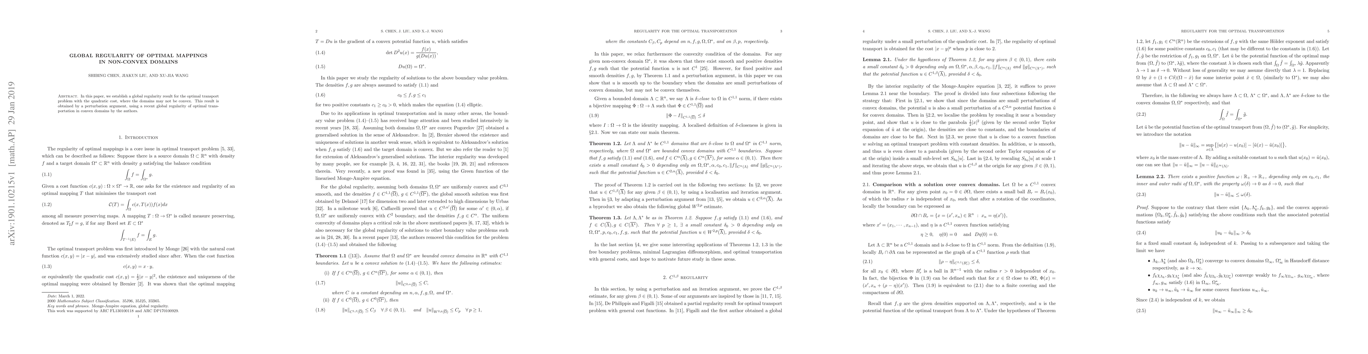 The paper presents a novel global regularity result for optimal transport mappings in non-convex domains, achieved through a perturbation argument combined with existing results in convex domains.