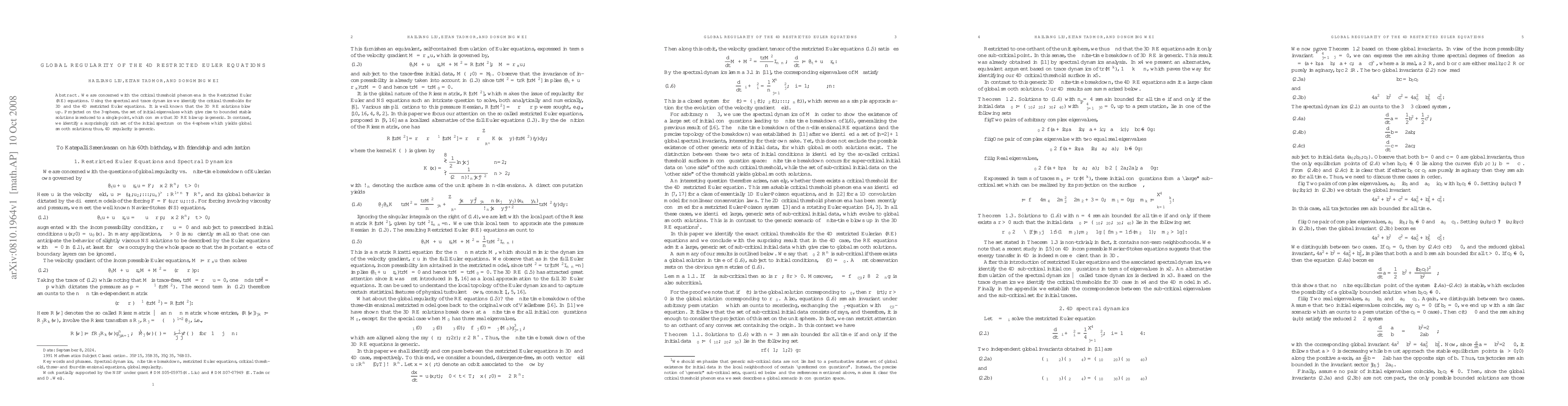 We are concerned with the critical threshold phenomena in the Restricted Euler (RE) equations. Using the spectral and trace dynamics we identify the critical thresholds for 3D and the 4D restricted Euler equations. It is well known that the 3D RE solutions blow up. Projected on the 3-sphere, the set of initial eigenvalues which give rise to bounded stable solutions is reduced to a single point, which confirms that 3D RE blowup is generic. In contrast, we identify a surprisingly rich set of the initial spectrum on the 4-sphere which yields global smooth solutions; thus, 4D regularity is generic.