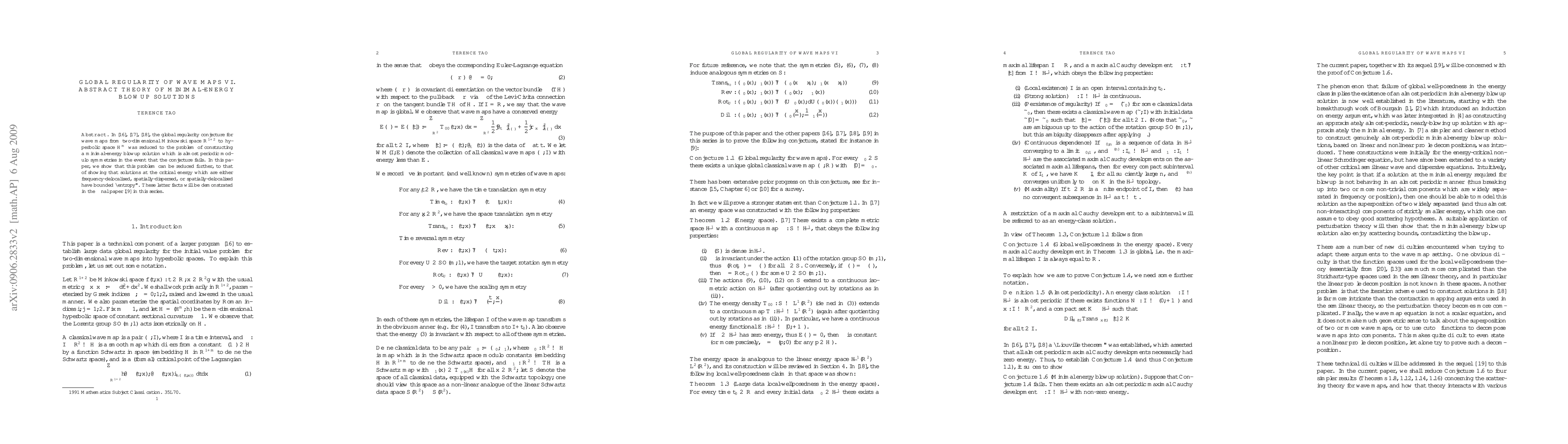 This paper explores the global regularity conjecture for wave maps by reducing the problem of minimal-energy blowup solutions to demonstrating bounded "entropy" for solutions at critical energy that are either frequency-delocalised, spatially-dispersed, or spatially-delocalised. The final paper in the series will provide the necessary proof for these facts.