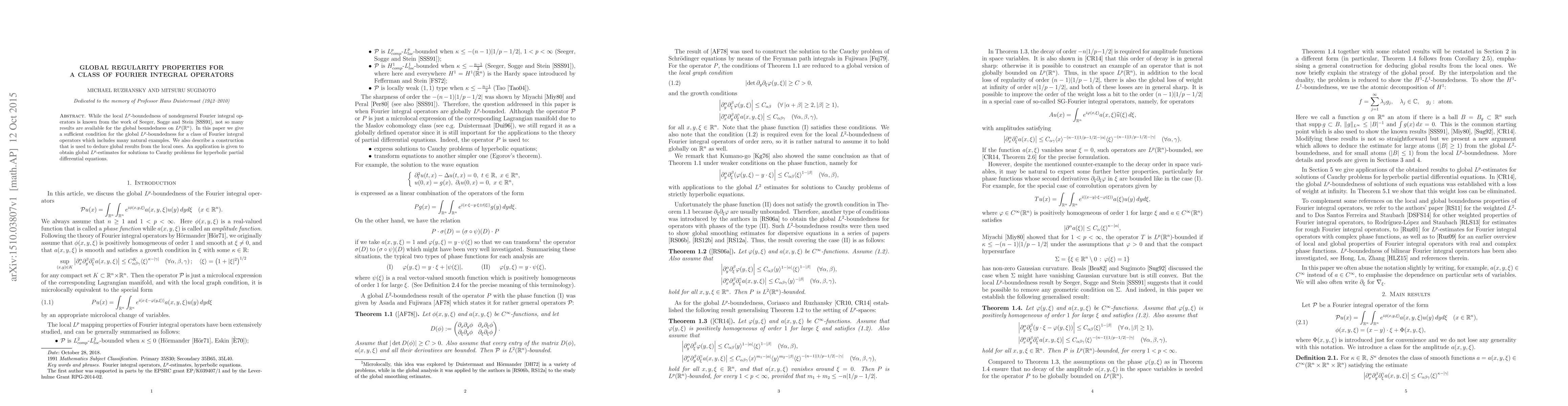 This paper establishes a sufficient condition for the global $L^p$-boundedness of a class of Fourier integral operators, extending beyond local results. It also provides a method to derive global results from local ones, with an application to obtaining global $L^p$-estimates for solutions to hyperbolic partial differential equations.