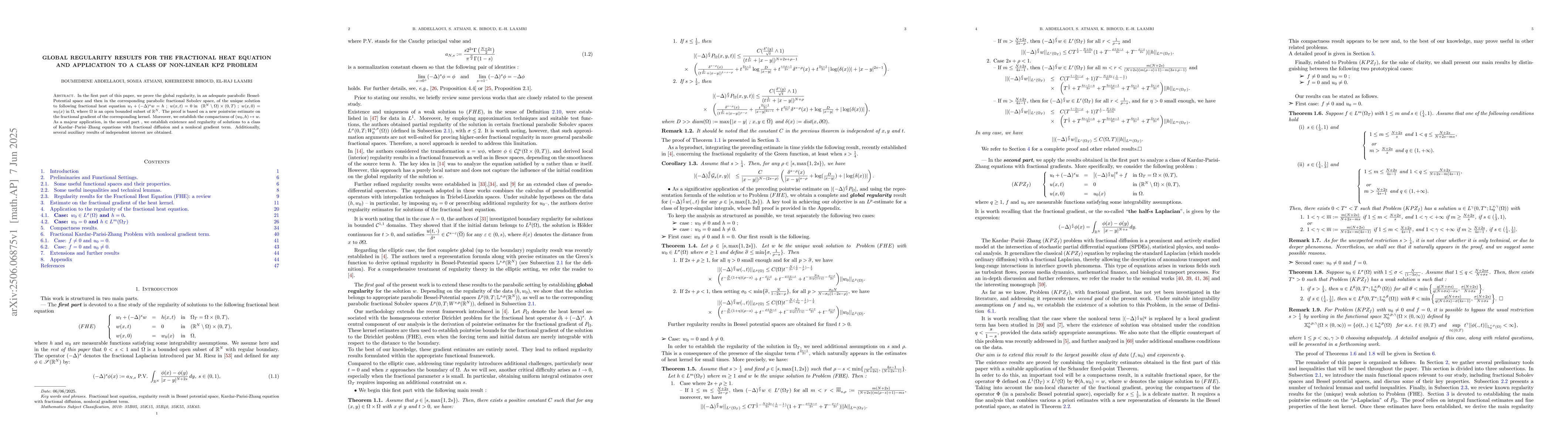 This research paper establishes global regularity results for the fractional heat equation and its application to a class of non-linear KPZ problems, demonstrating existence and regularity of solutions with new pointwise estimates and compactness results.