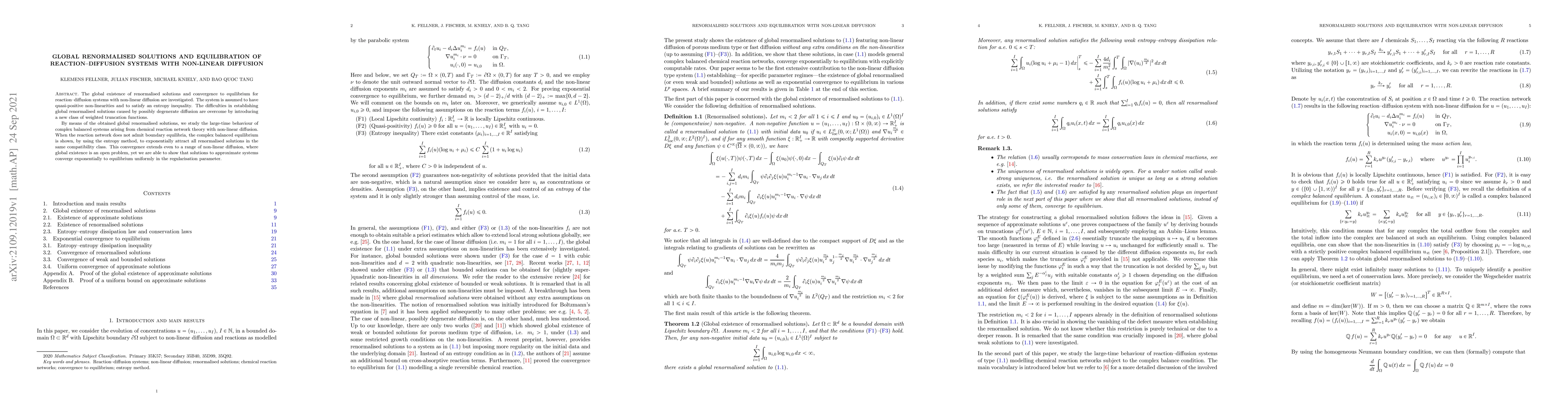 This paper investigates global renormalised solutions and equilibration for reaction-diffusion systems with non-linear diffusion, introducing new weighted truncation functions to overcome degenerate diffusion challenges. It demonstrates exponential attraction to complex balanced equilibria for systems without boundary equilibria, even in non-linear diffusion scenarios where global existence is uncertain.