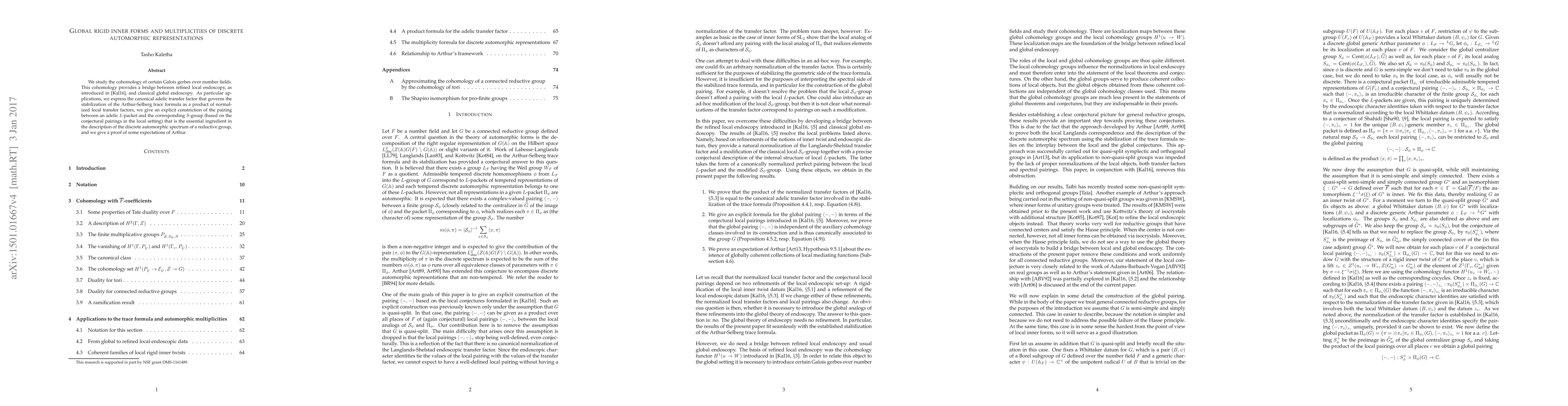 Given a number field we construct a canonical Galois gerbe over it and show that its cohomology provides a bridge between the refined local endoscopy introduced in arXiv:1304.3292 and classical global endoscopy. As particular applications, we express the canonical adelic transfer factor that governs the stabilization of the Arthur-Selberg trace formula as a product of normalized local transfer factors, we give an explicit construction of the pairing between an adelic L-packet and the corresponding S-group (based on the conjectural pairings in the local setting) that is the essential ingredient in the description of the discrete automorphic spectrum of a reductive group, and we give a proof of some expectations of Arthur.