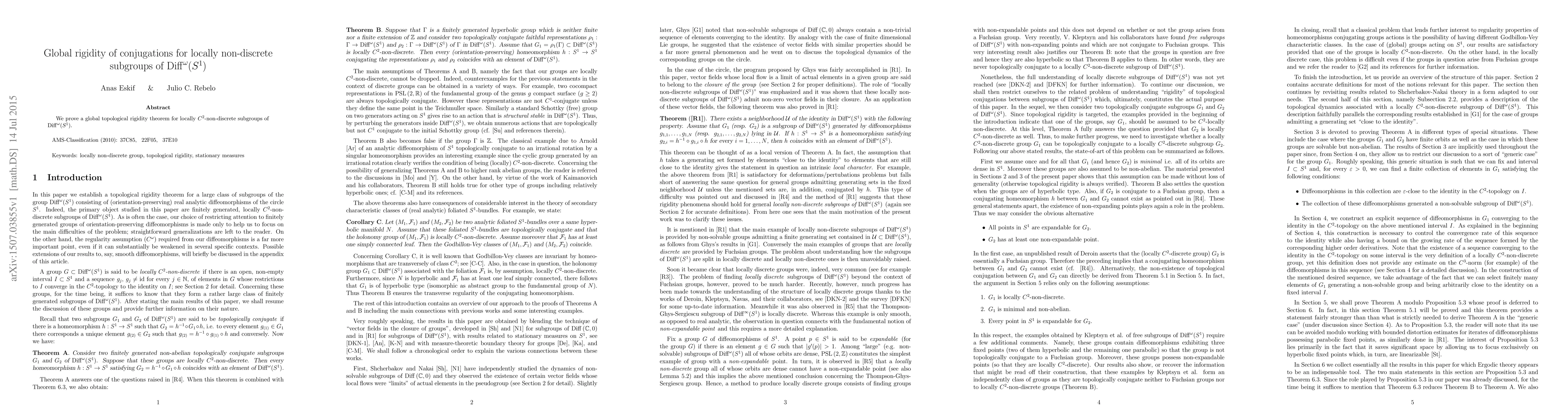 This paper proves a global topological rigidity theorem for locally non-discrete subgroups of circle diffeomorphisms, showing that such groups are globally rigid and have similar structure.