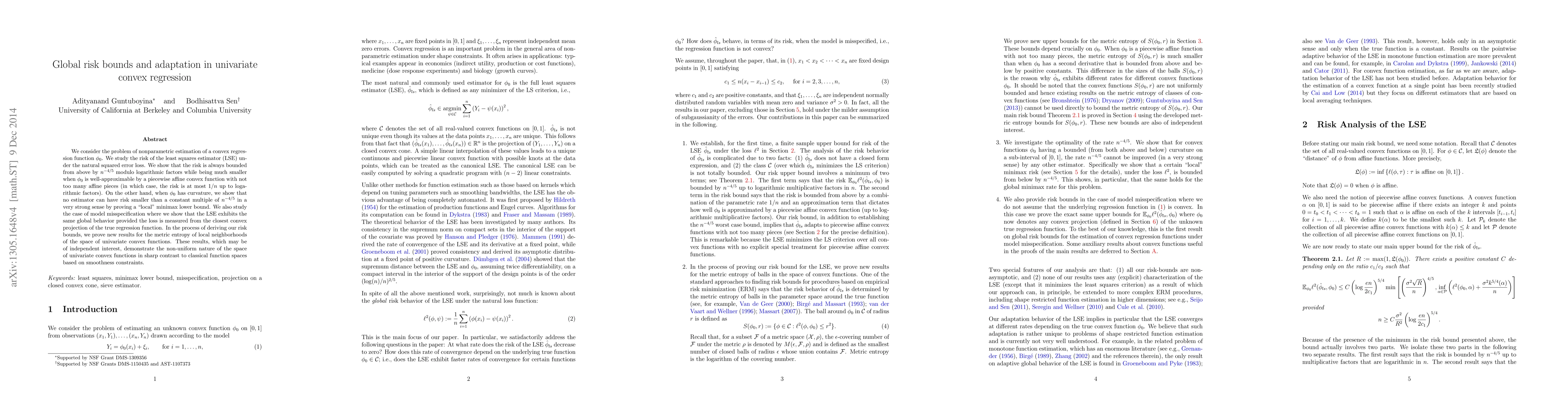 This paper investigates the risk bounds for the least squares estimator in univariate convex regression, demonstrating that the risk is bounded above by $n^{-4/5}$ with logarithmic factors, and is much smaller when the true function is well-approximable by a piecewise affine convex function. It also establishes a lower bound showing that no estimator can achieve better than $n^{-4/5}$ risk in the presence of curvature.