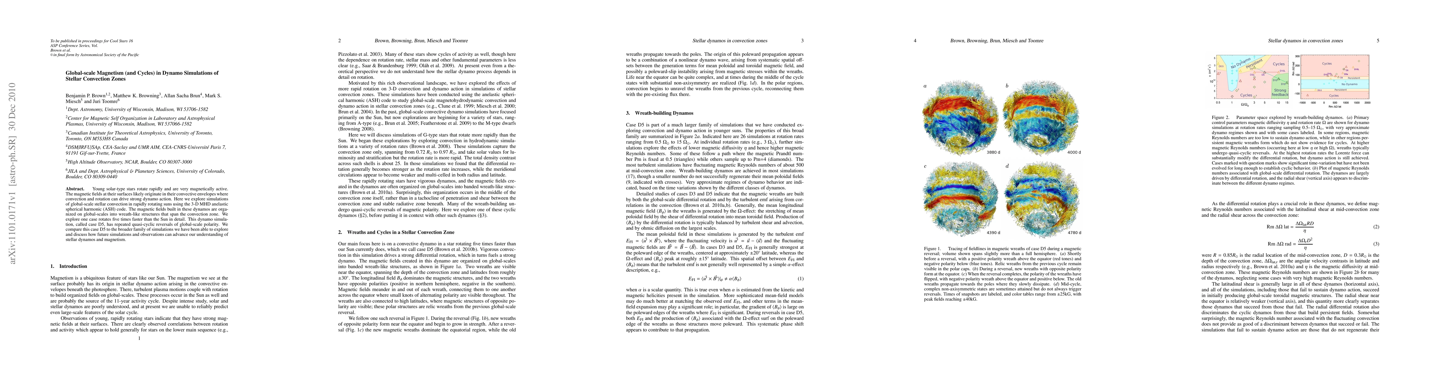 Young solar-type stars rotate rapidly and are very magnetically active. The magnetic fields at their surfaces likely originate in their convective envelopes where convection and rotation can drive strong dynamo action. Here we explore simulations of global-scale stellar convection in rapidly rotating suns using the 3-D MHD anelastic spherical harmonic (ASH) code. The magnetic fields built in these dynamos are organized on global-scales into wreath-like structures that span the convection zone. We explore one case rotates five times faster than the Sun in detail. This dynamo simulation, called case D5, has repeated quasi-cyclic reversals of global-scale polarity. We compare this case D5 to the broader family of simulations we have been able to explore and discuss how future simulations and observations can advance our understanding of stellar dynamos and magnetism.