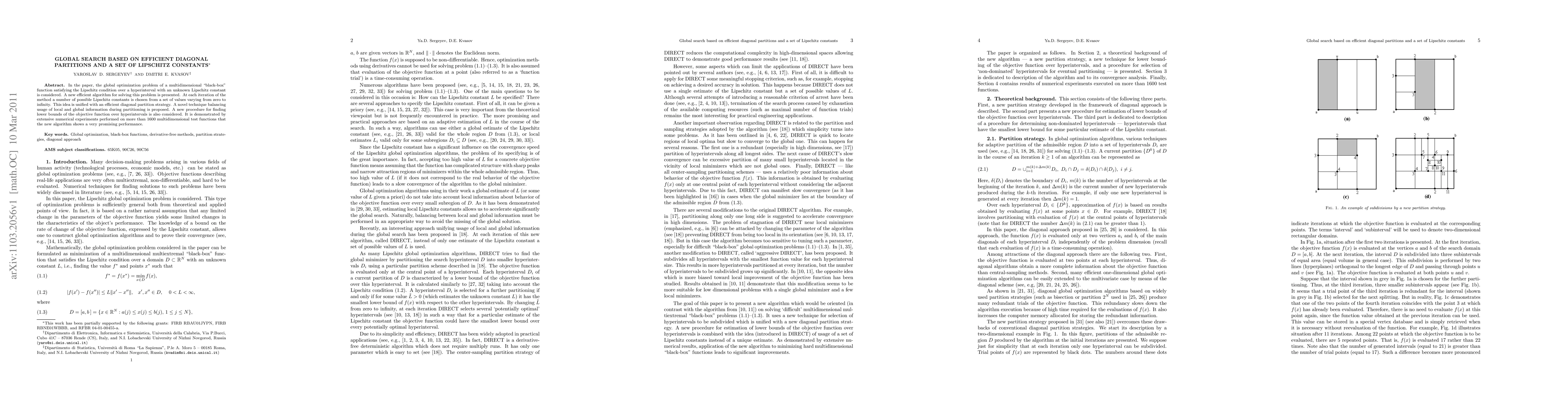 This paper introduces an efficient global optimization algorithm for multidimensional "black-box" functions with unknown Lipschitz constants, combining diagonal partitioning and a set of Lipschitz constants. The proposed method balances local and global information, showing promising results through extensive numerical experiments on over 1600 test functions.