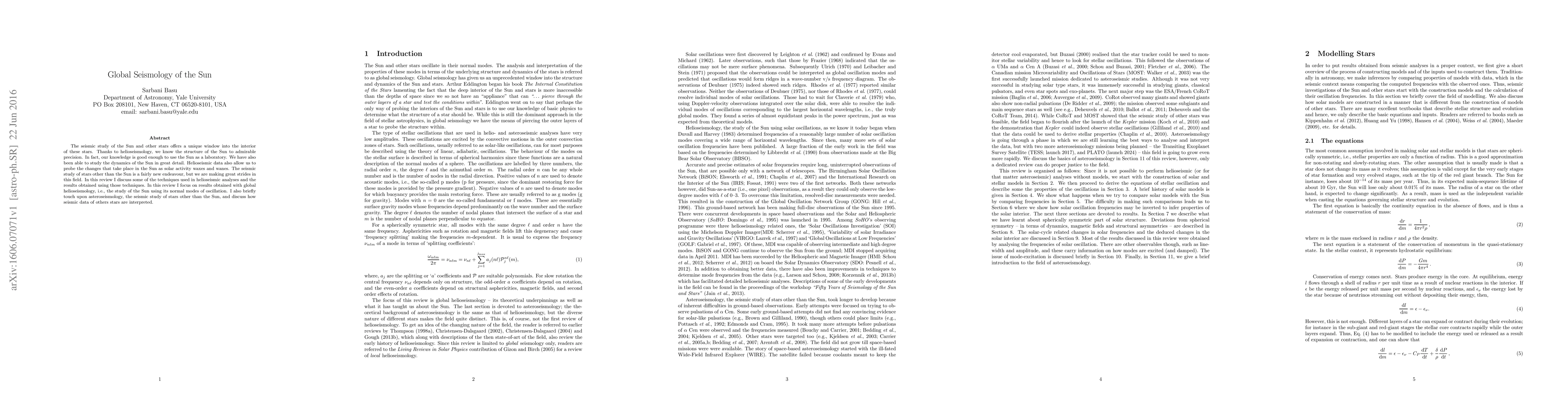 The seismic study of the Sun and other stars offers a unique window into the interior of these stars. Thanks to helioseismology, we know the structure of the Sun to admirable precision. In fact, our knowledge is good enough to use the Sun as a laboratory. We have also been able to study the dynamics of the Sun in great detail. Helioseismic data also allow us to probe the changes that take place in the Sun as solar activity waxes and wanes. The seismic study of stars other than the Sun is a fairly new endeavour, but we are making great strides in this field. In this review I discuss some of the techniques used in helioseismic analyses and the results obtained using those techniques. In this review I focus on results obtained with global helioseismology, i.e., the study of the Sun using its normal modes of oscillation. I also briefly touch upon asteroseismology, the seismic study of stars other than the Sun, and discuss how seismic data of others stars are interpreted.