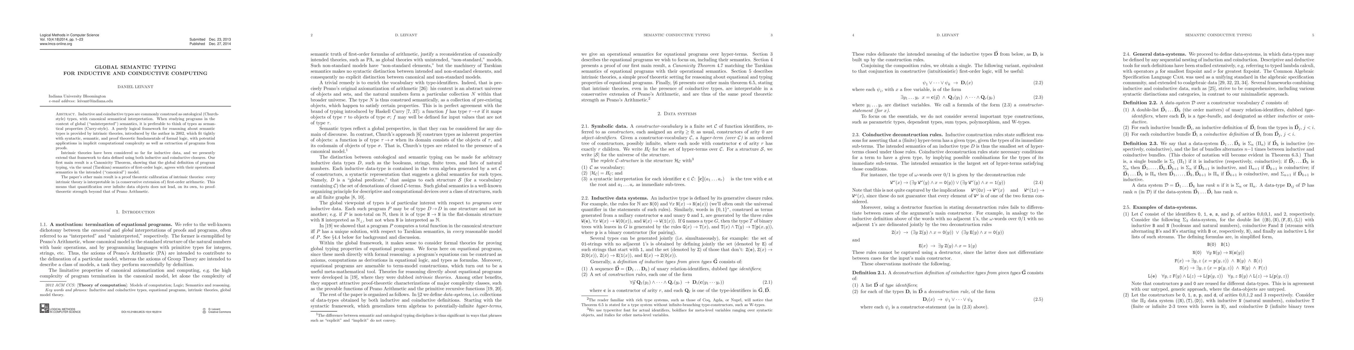This paper extends intrinsic theories to encompass both inductive and coinductive types, positioning them as semantic properties rather than Church-style types. It proves a Canonicity Theorem aligning global program typing with operational semantics and demonstrates that these theories remain within the proof-theoretic strength of Peano Arithmetic.