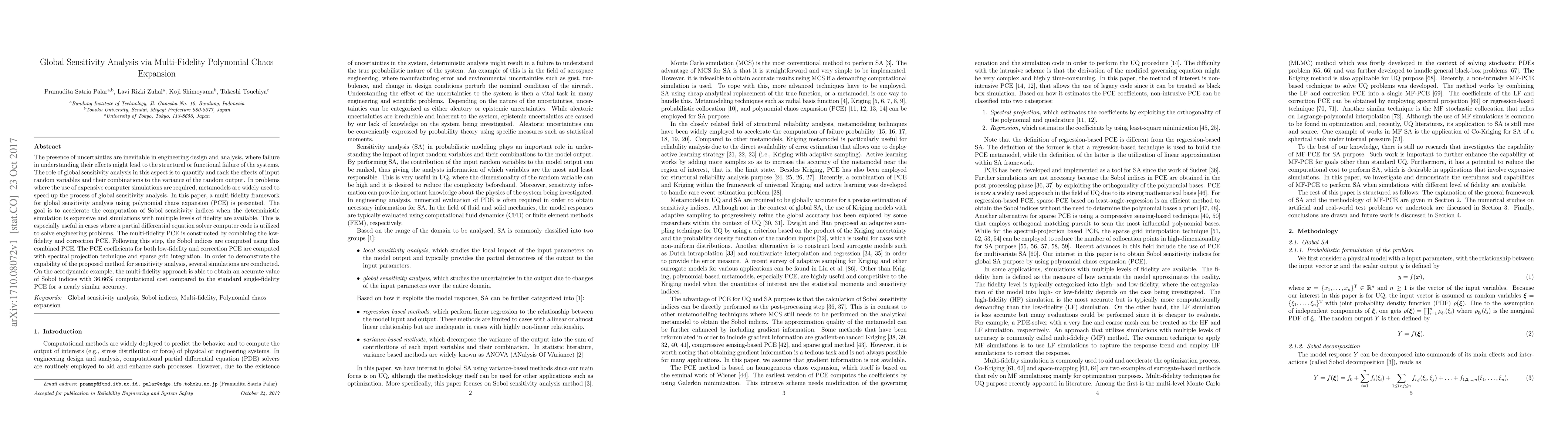 This paper proposes a multi-fidelity framework using polynomial chaos expansion (PCE) to accelerate global sensitivity analysis in expensive simulations. It combines low-fidelity and correction PCE to compute Sobol sensitivity indices with reduced computational cost, demonstrating significant efficiency gains in an aerodynamic example.