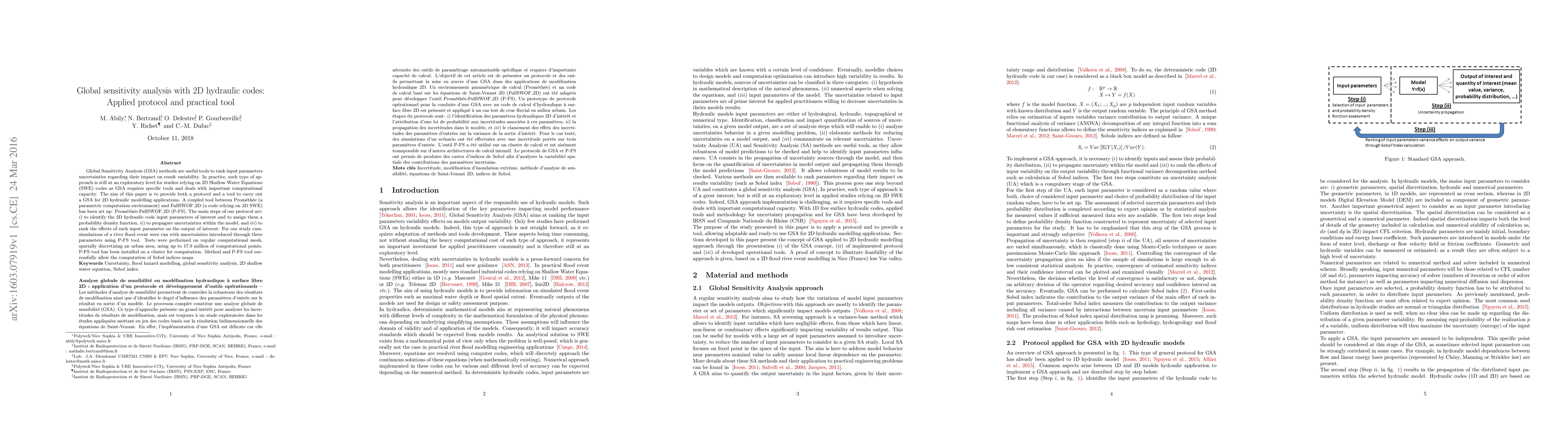 This paper proposes a protocol and a coupled tool, P-FS, for conducting Global Sensitivity Analysis (GSA) in 2D hydraulic modeling using the FullSWOF 2D code. The tool, developed through integration with Prom\'ethe\'e, allows for the identification, propagation, and ranking of input parameters' uncertainties, facilitating robust flood hazard modeling.