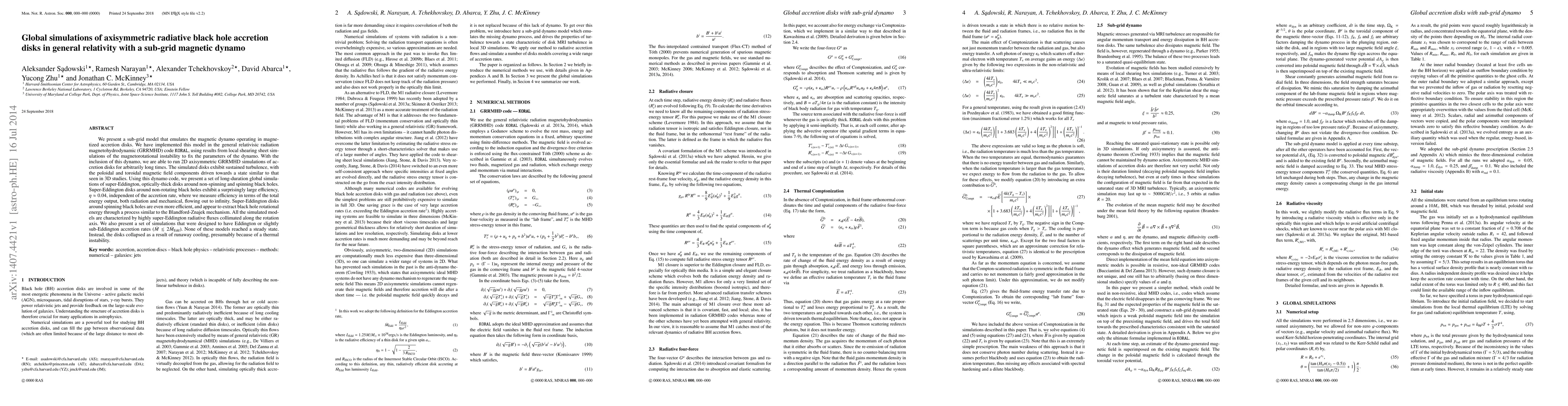 This paper presents sub-grid magnetic dynamo models in general relativistic radiative magnetohydrodynamic simulations of accretion disks, showing sustained turbulence and high efficiency in super-Eddington disks, especially around spinning black holes. Disks with sub-Eddington accretion rates failed to reach a steady state due to runaway cooling.