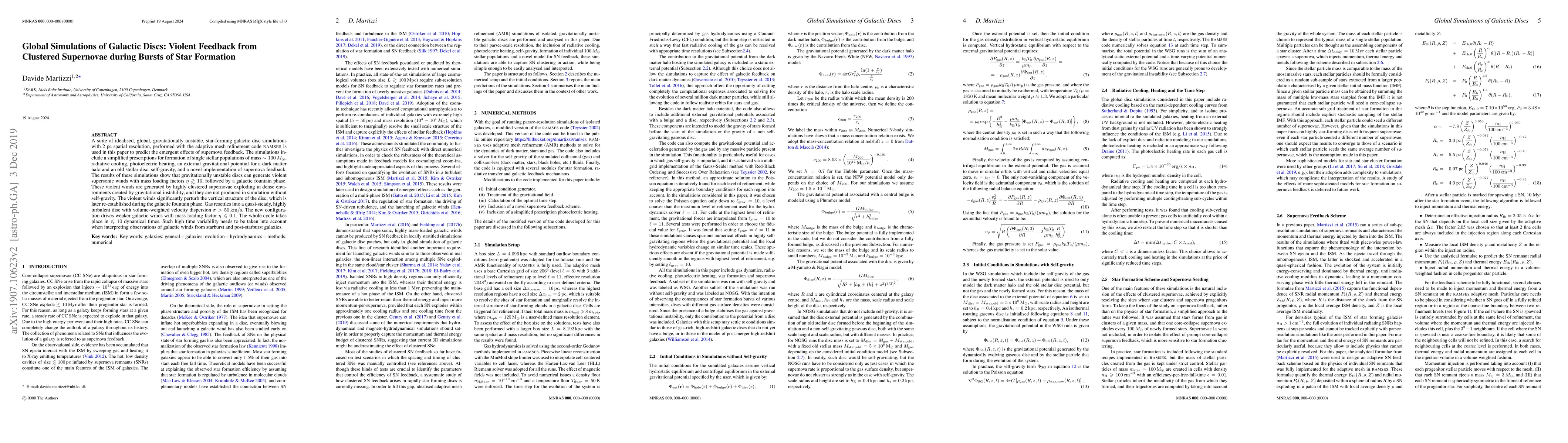 This paper uses global simulations to study the effects of supernova feedback in gravitationally unstable star-forming galactic discs, revealing violent winds driven by clustered supernovae that significantly alter the disc's vertical structure before settling into a turbulent quasi-steady state. The findings highlight the high time variability of galactic winds in starburst galaxies.