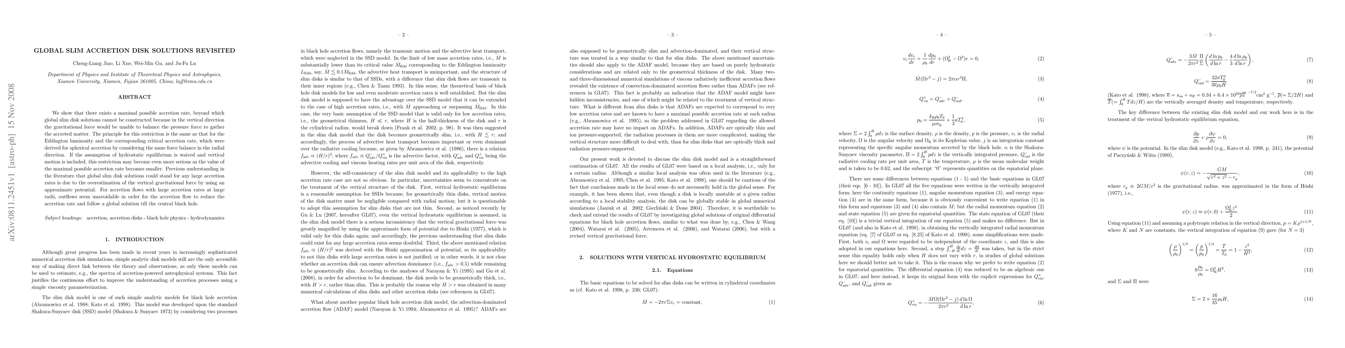 This paper revisits global slim accretion disk solutions, demonstrating that a maximal accretion rate exists beyond which these solutions cannot be sustained due to gravitational force failing to balance pressure forces. This critical rate mirrors the Eddington luminosity principle, and the inclusion of vertical motion further reduces this limit, necessitating outflows at high accretion rates.