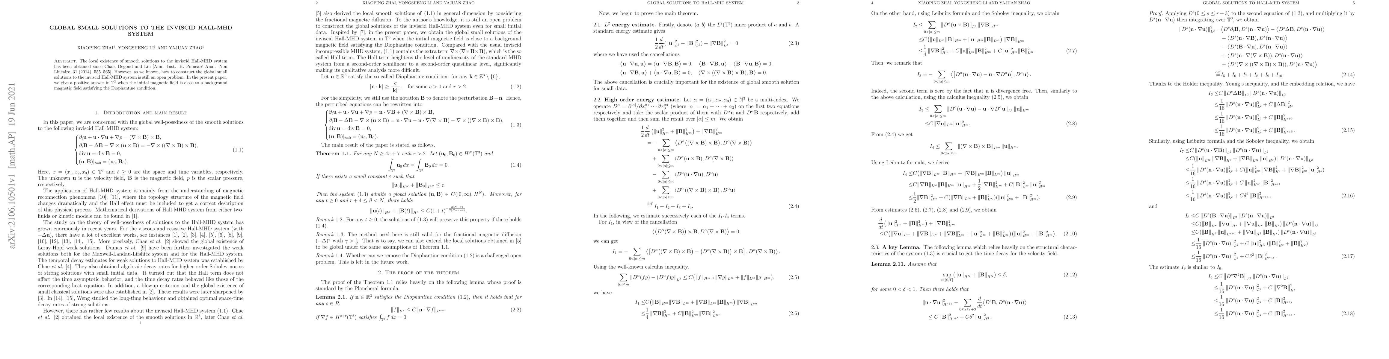 This paper addresses the open problem of constructing global small solutions to the inviscid Hall-MHD system, providing a solution in $ \mathbb{T}^3$ when the initial magnetic field is close to a background magnetic field that satisfies the Diophantine condition.
