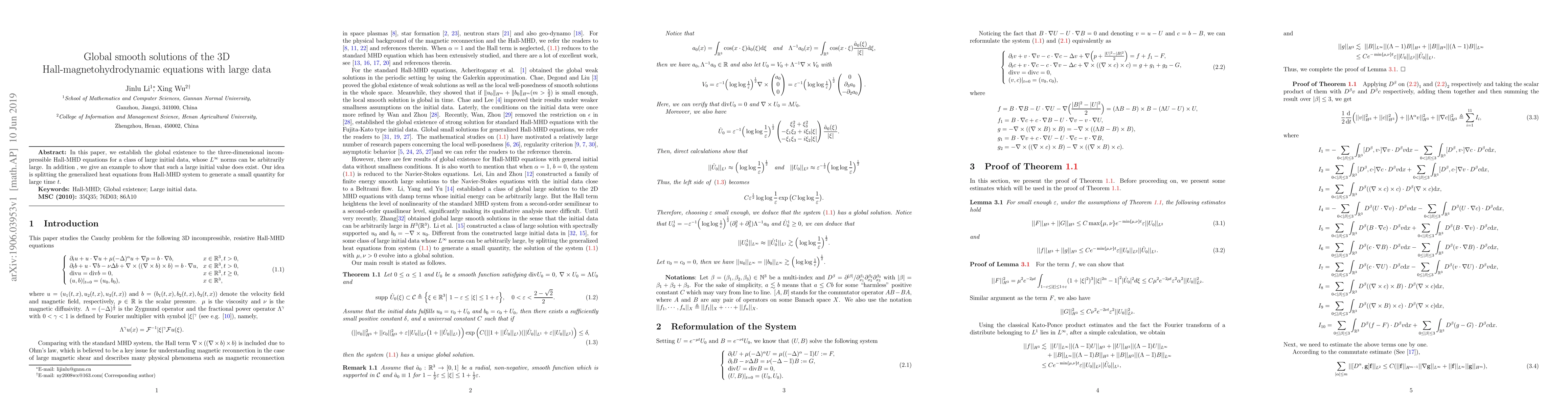Researchers established global smooth solutions to 3D Hall-magnetohydrodynamic equations for large initial data with arbitrarily high L^{¿infty} norms. They demonstrated the existence of such large initial values and provided a method to generate small quantities over long times.