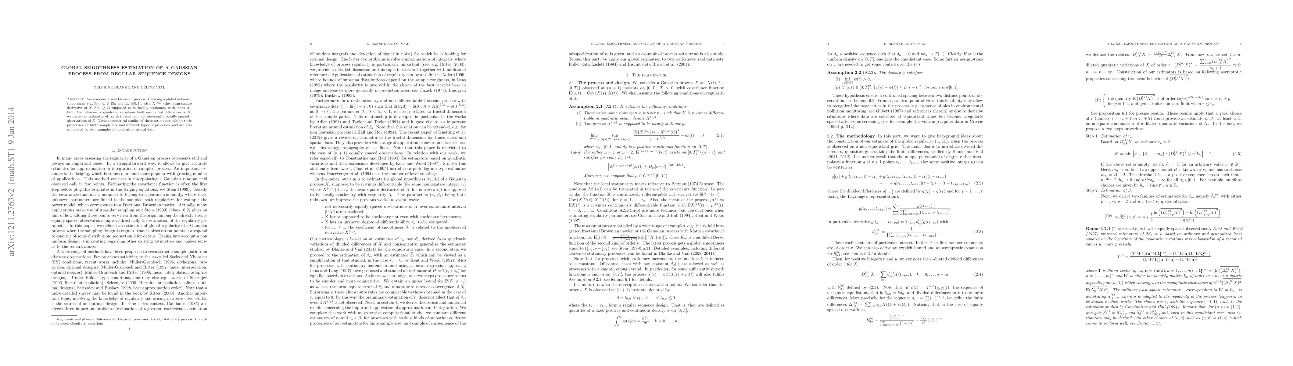 This paper develops a method to estimate the global smoothness of a Gaussian process from regular sequence designs, using quadratic variations built on divided differences of the process. It provides numerical studies and applications to real data.
