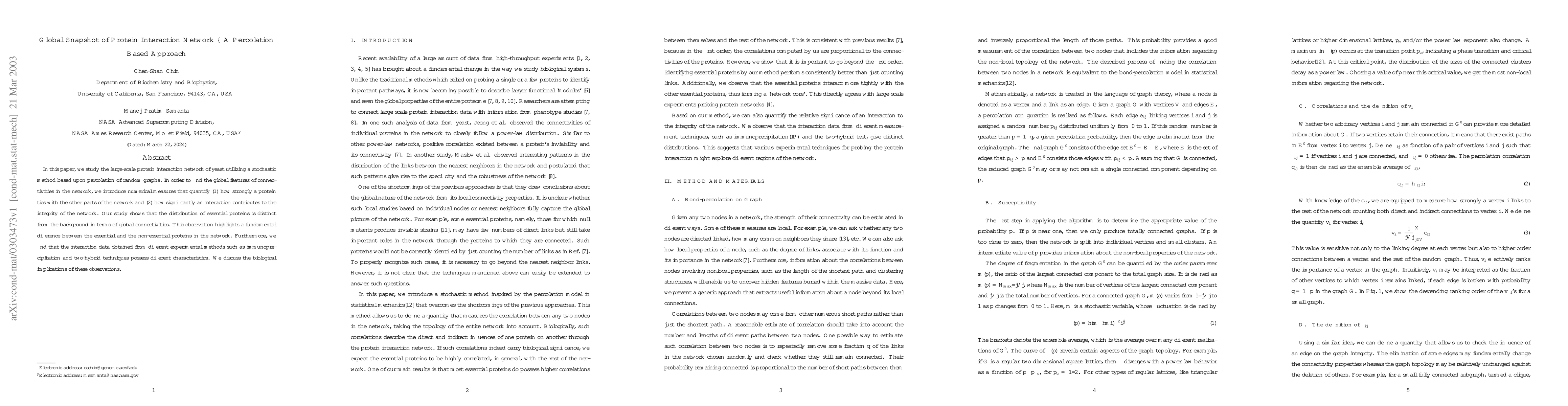 A percolation-based approach was introduced to study large-scale protein interaction networks, providing a new method for analyzing protein connectivity.