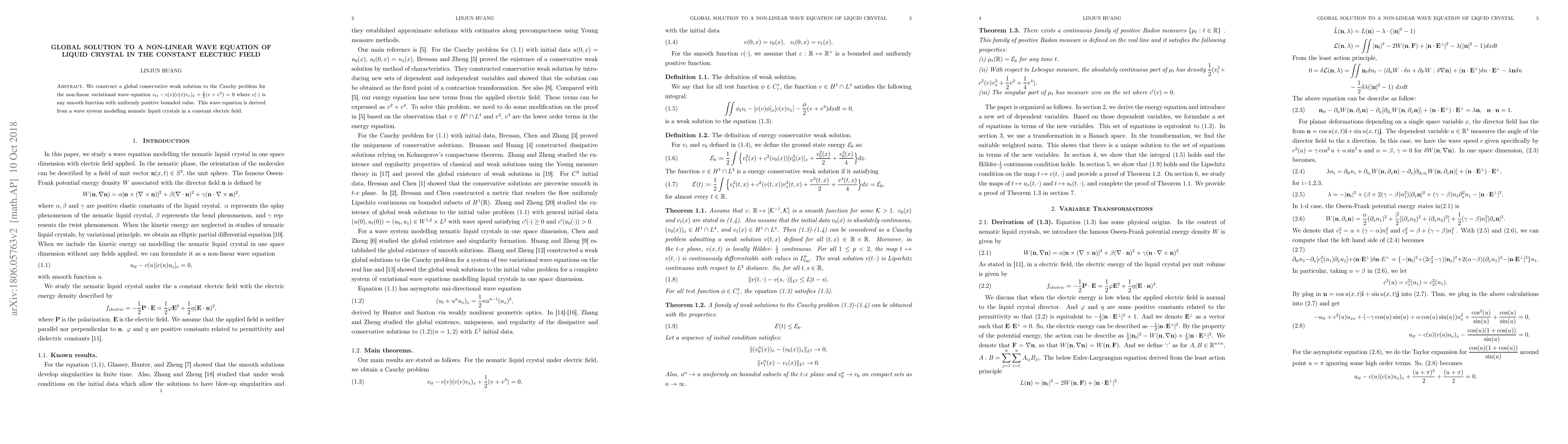 We construct a global conservative weak solution to the Cauchy problem for the non-linear variational wave equation $v_{tt} - c(v)(c(v)v_x)_x + \frac{1}{2}(v+v^3)= 0$ where $c(\cdot)$ is any smooth function with uniformly positive bounded value. This wave equation is derived from a wave system modelling nematic liquid crystals in a constant electric field.