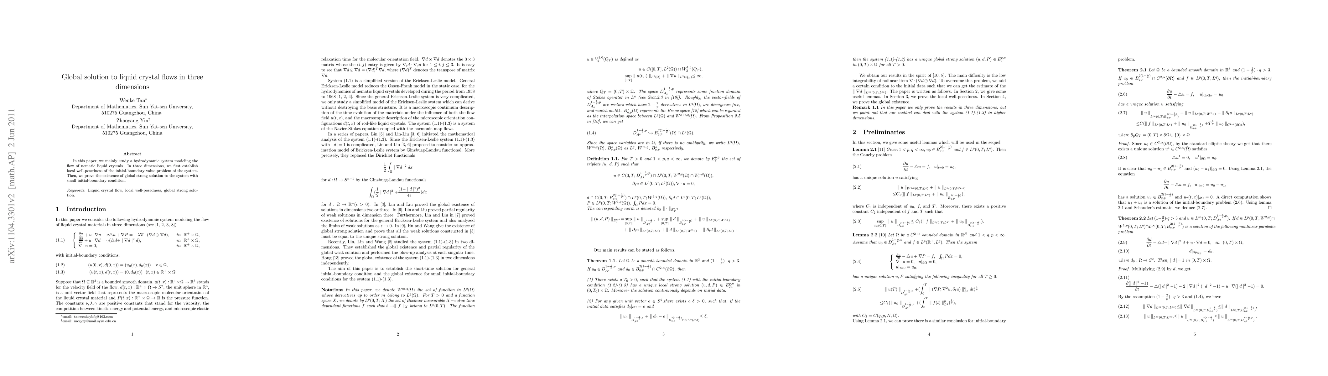 Researchers have established a global solution for the three-dimensional flow of nematic liquid crystals, proving its existence with small initial conditions in a hydrodynamic system.