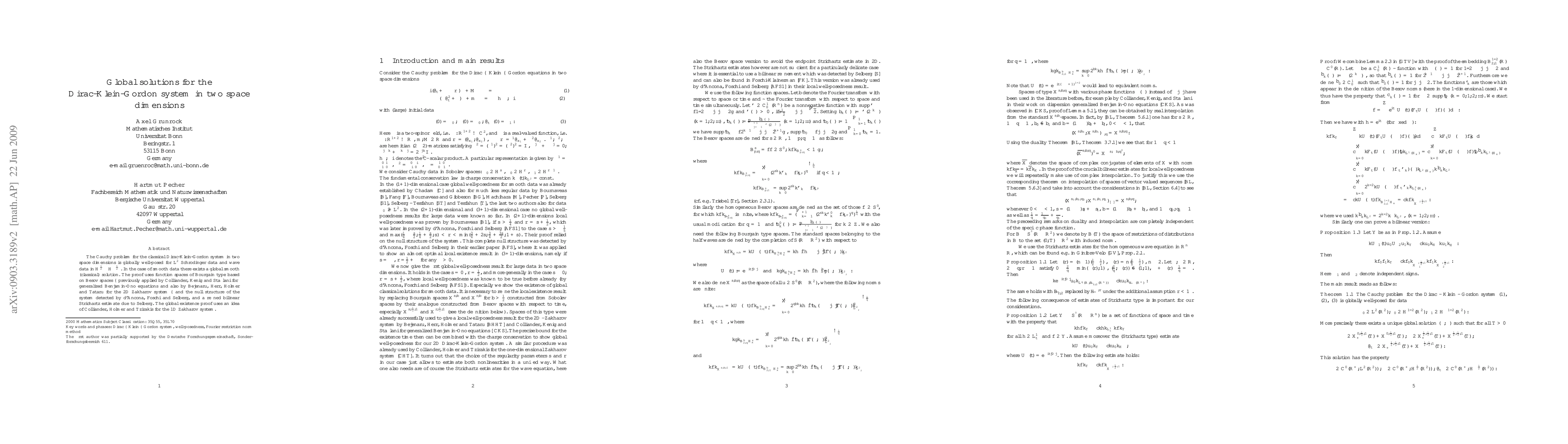 This paper establishes global well-posedness for the Dirac-Klein-Gordon system in two dimensions, proving the existence of smooth solutions for initial data in specified function spaces. The proof leverages Bourgain-type function spaces, null structure techniques, and refined bilinear Strichartz estimates.