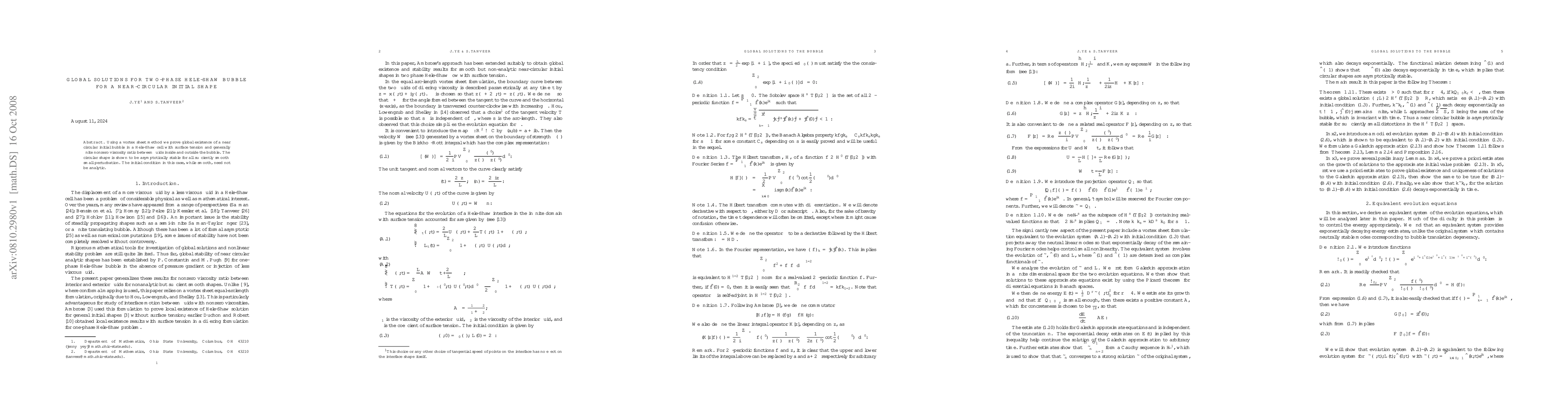 Summary: The paper proves global existence and asymptotic stability of a near-circular initial bubble in a Hele-Shaw cell using a vortex sheet method, accommodating finite viscosity ratios and smooth but not necessarily analytic initial conditions.