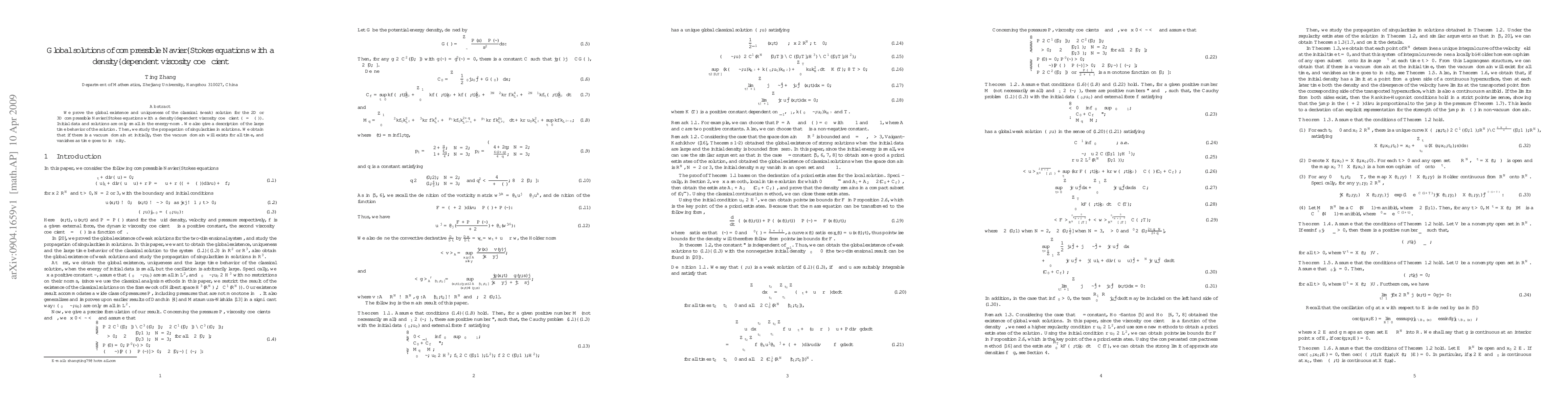This paper proves the global existence and uniqueness of classical (weak) solutions for the 2D or 3D compressible Navier-Stokes equations with a density-dependent viscosity coefficient. It also describes the long-term behavior of solutions and examines the propagation of singularities, showing that vacuum domains persist indefinitely but diminish over time.