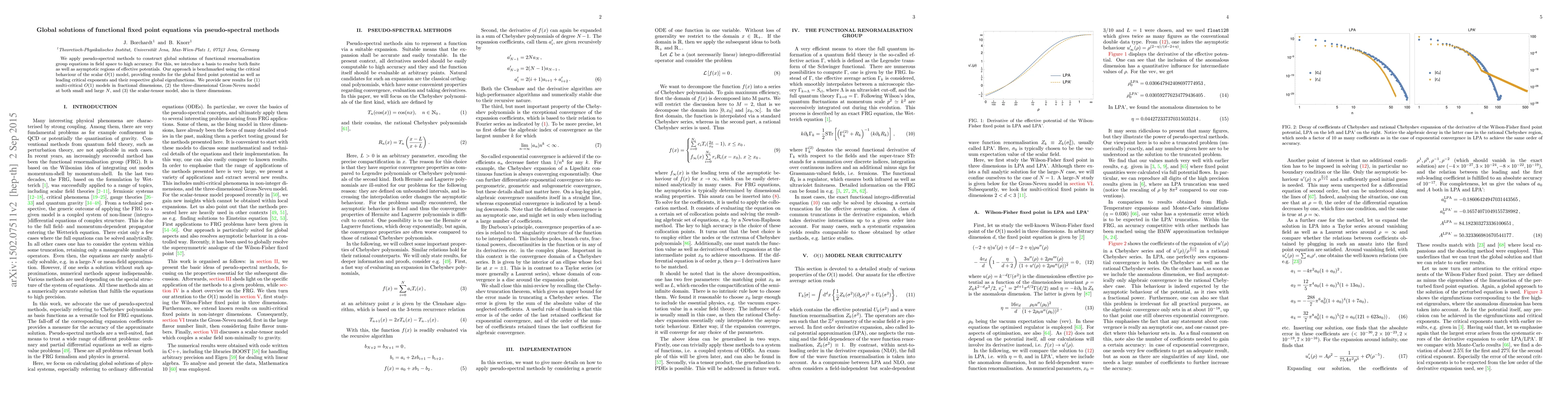 Researchers used pseudo-spectral methods to solve complex equations in physics, finding global solutions for various models with high accuracy, shedding light on critical behavior and eigenfunctions in different dimensions.