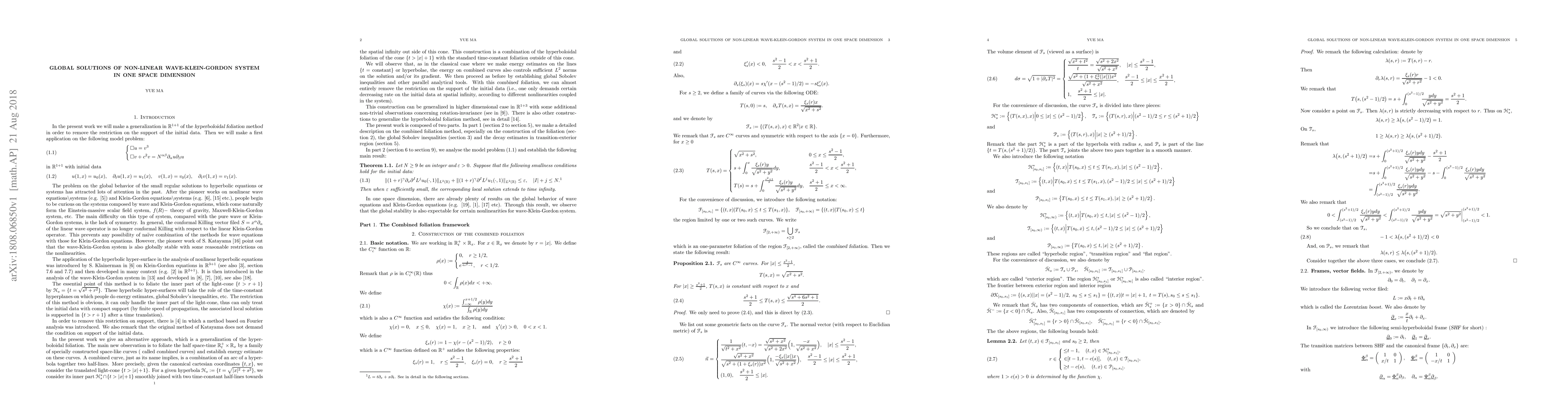 Researchers developed a new method to solve non-linear wave-Klein-Gordon systems in 1D space without restrictions on initial data support. This breakthrough allows for more flexible modeling of physical phenomena.