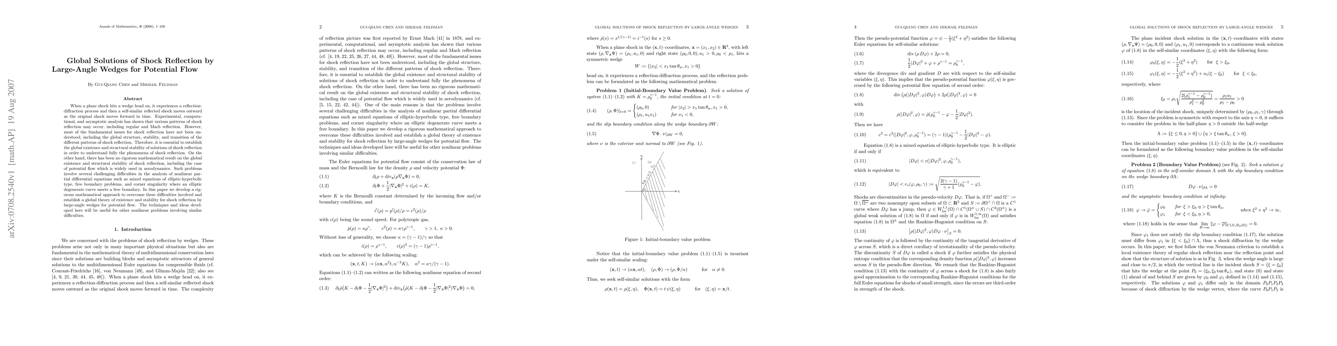 Researchers developed a rigorous mathematical approach to study shock reflection in potential flow caused by large-angle wedges, establishing global existence and stability for the phenomenon.