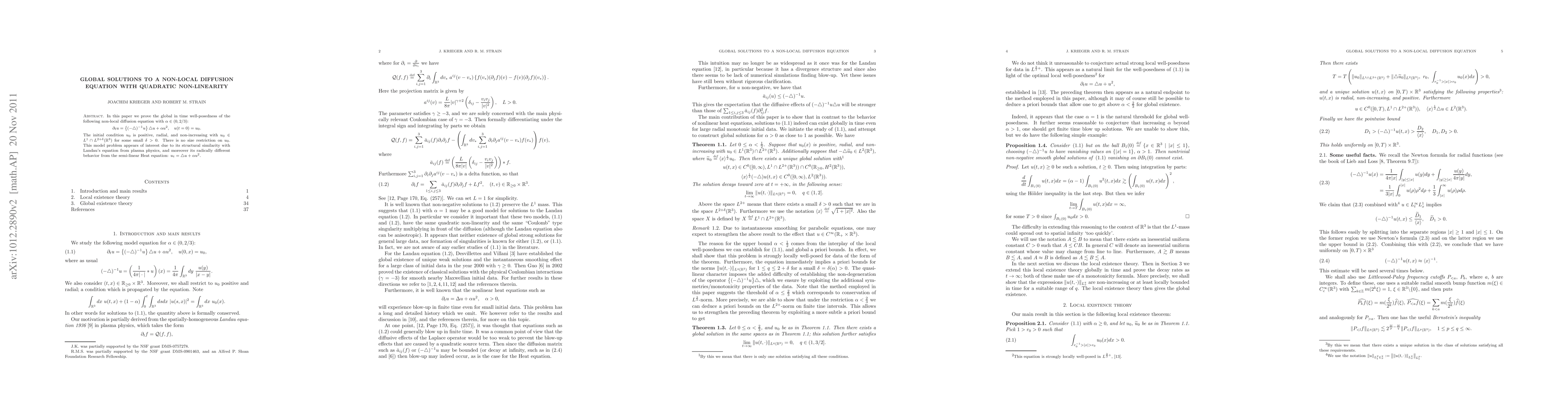 In this paper we prove the global in time well-posedness of the following non-local diffusion equation with $\alpha \in[0,2/3)$: $$ \partial_t u = {(-\triangle)^{-1}u} \triangle u + \alpha u^2, \quad u(t=0) = u_0. $$ The initial condition $u_0$ is positive, radial, and non-increasing with $u_0\in L^1\cap L^{2+\delta}(\threed)$ for some small $\delta >0$. There is no size restriction on $u_0$. This model problem appears of interest due to its structural similarity with Landau's equation from plasma physics, and moreover its radically different behavior from the semi-linear Heat equation: $u_t = \triangle u + \alpha u^2$.