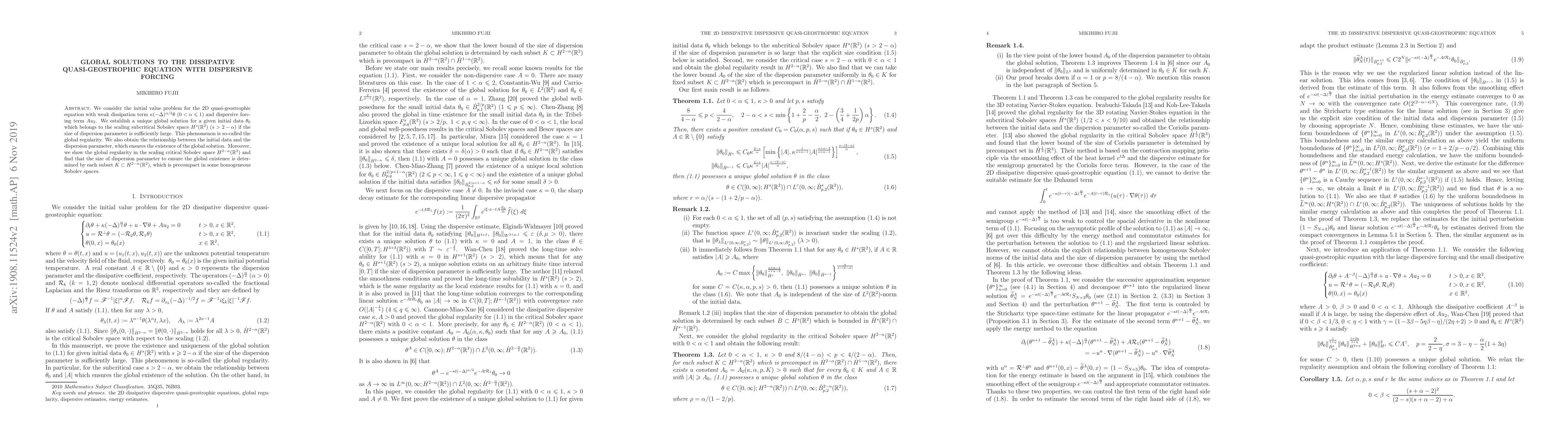 This paper establishes unique global solutions for the 2D quasi-geostrophic equation with a weak dissipation term and dispersive forcing, demonstrating global regularity under certain conditions on the initial data and dispersion parameter. The study also explores the relationship between initial data and the dispersion parameter for global solution existence.