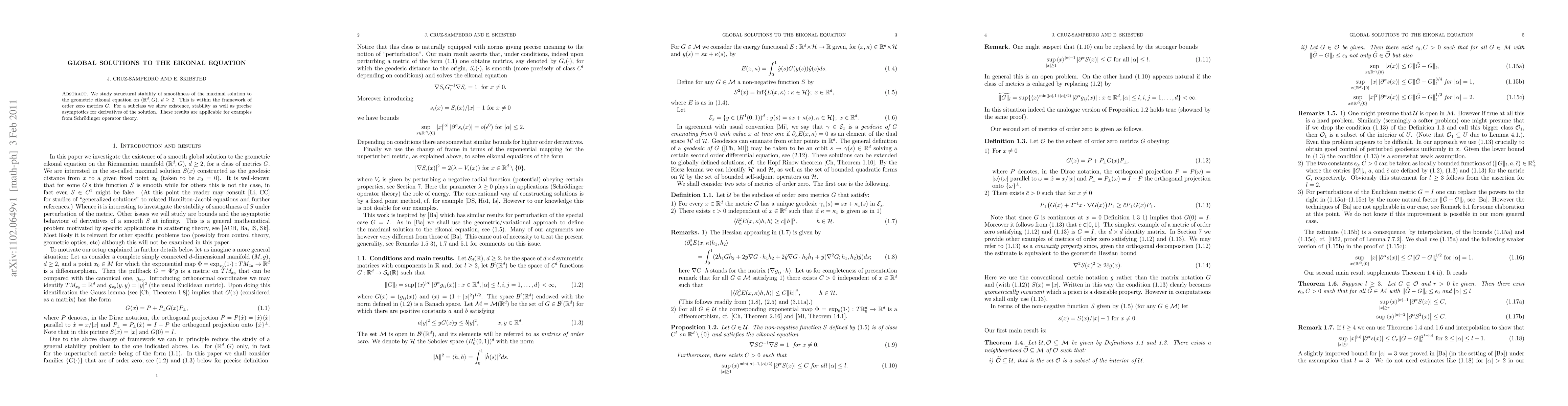 This paper investigates the structural stability and smoothness of maximal solutions to the geometric eikonal equation in the context of order zero metrics. It demonstrates existence, stability, and precise asymptotic behavior for derivatives of the solution, with applications to Schrödinger operator theory.