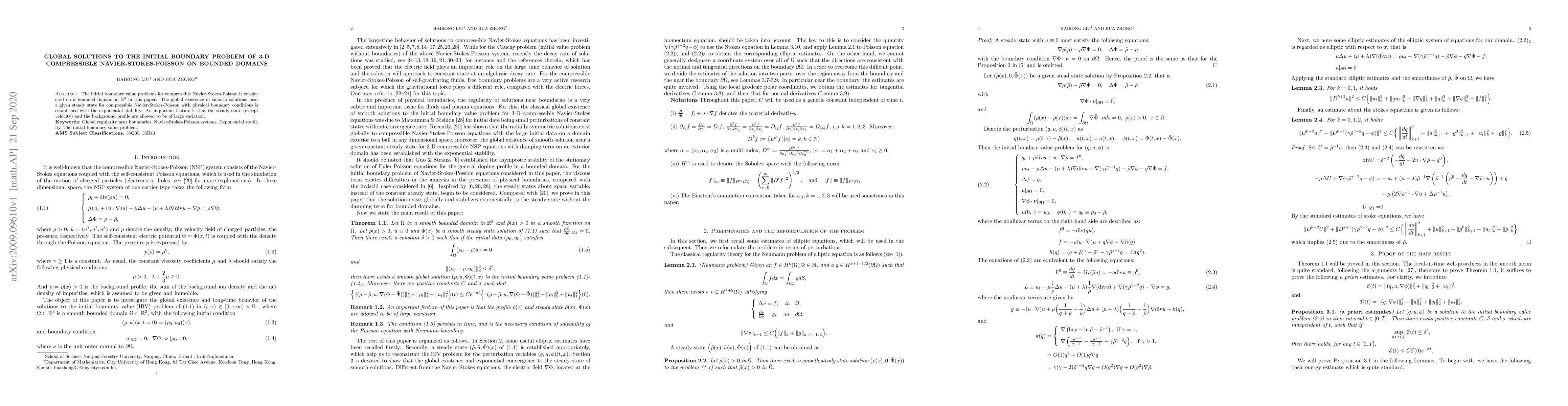 The paper establishes global existence of smooth solutions for compressible Navier-Stokes-Poisson on bounded domains, with exponential stability near a steady state, allowing large variation in steady state and background profile.