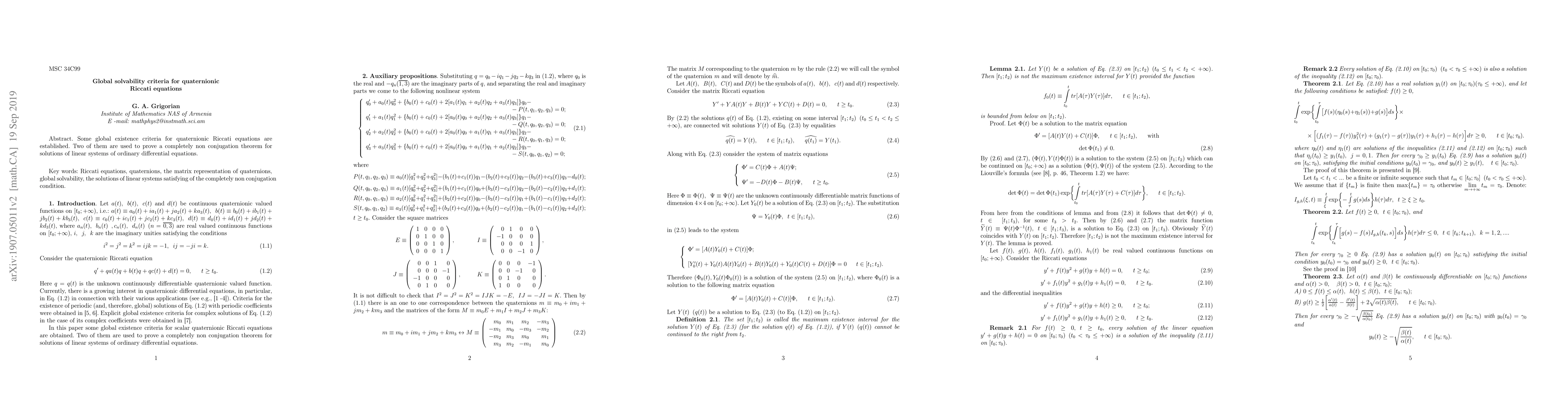 Summary: This paper establishes global existence criteria for quaternionic Riccati equations and utilizes two of these criteria to demonstrate a non-conjugation theorem for solutions of linear ordinary differential equations.
