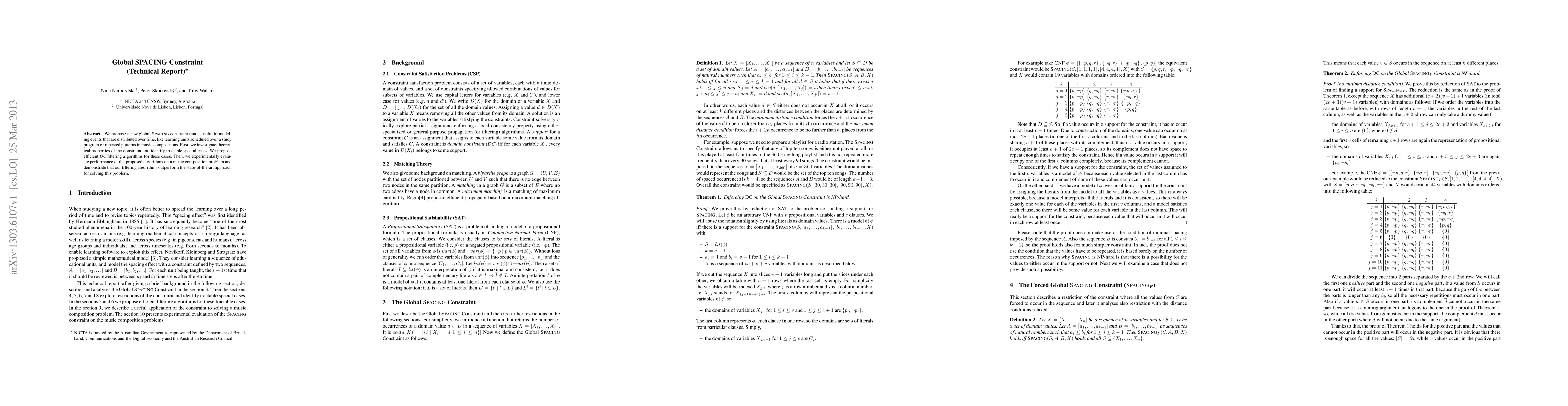 We propose a new global SPACING constraint that is useful in modeling events that are distributed over time, like learning units scheduled over a study program or repeated patterns in music compositions. First, we investigate theoretical properties of the constraint and identify tractable special cases. We propose efficient DC filtering algorithms for these cases. Then, we experimentally evaluate performance of the proposed algorithms on a music composition problem and demonstrate that our filtering algorithms outperform the state-of-the-art approach for solving this problem.