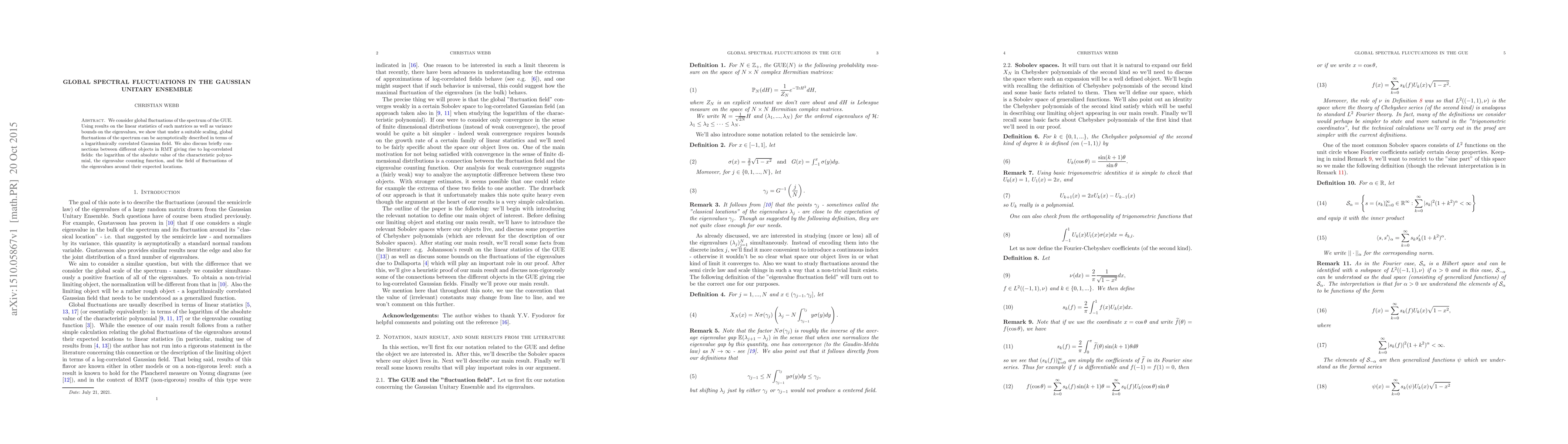Global fluctuations of the spectrum in the Gaussian Unitary Ensemble can be described as a logarithmically correlated Gaussian field under suitable scaling. This discovery has implications for understanding random matrix theory and its connections to other related fields.