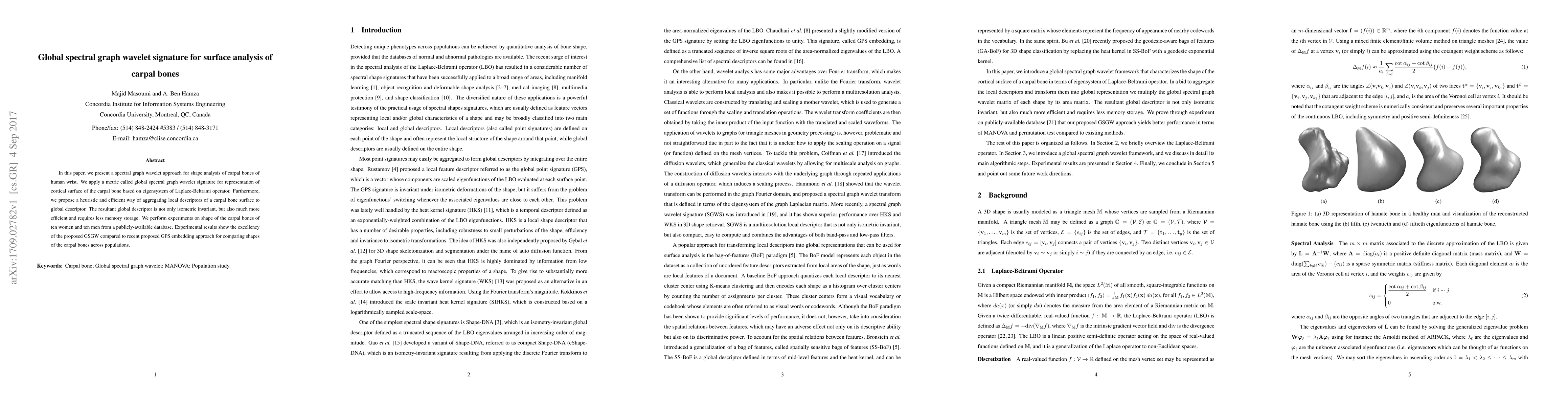 Researchers developed a new method for analyzing carpal bones using spectral graph wavelet signatures, which can efficiently represent complex bone shapes and compare them across populations with high accuracy.