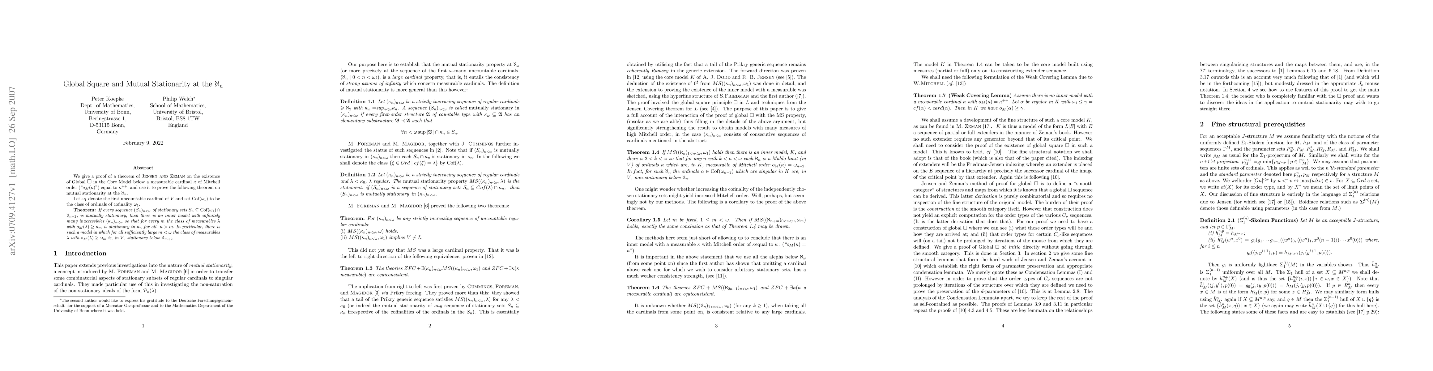 Jensen & Zeman) that Foreman and Magidor's Mutual Stationarity property