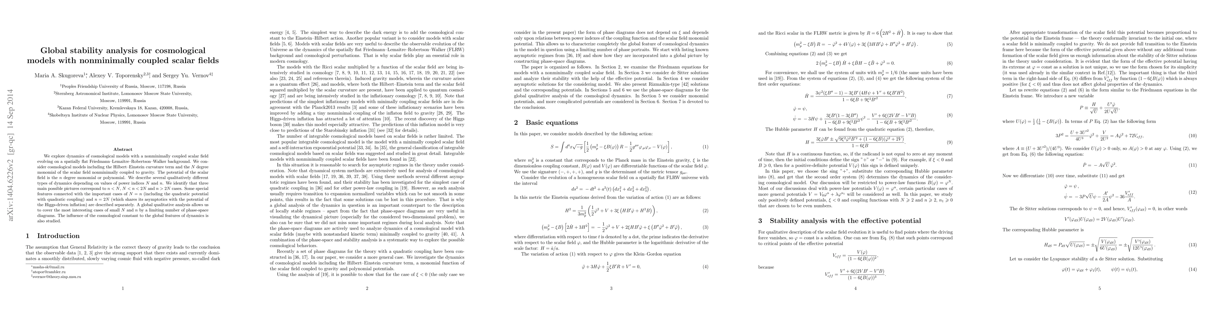 This research paper analyzes the dynamics of cosmological models with non-minimally coupled scalar fields, identifying three main pictures of behavior depending on power indices N and n, with implications for understanding inflationary models.