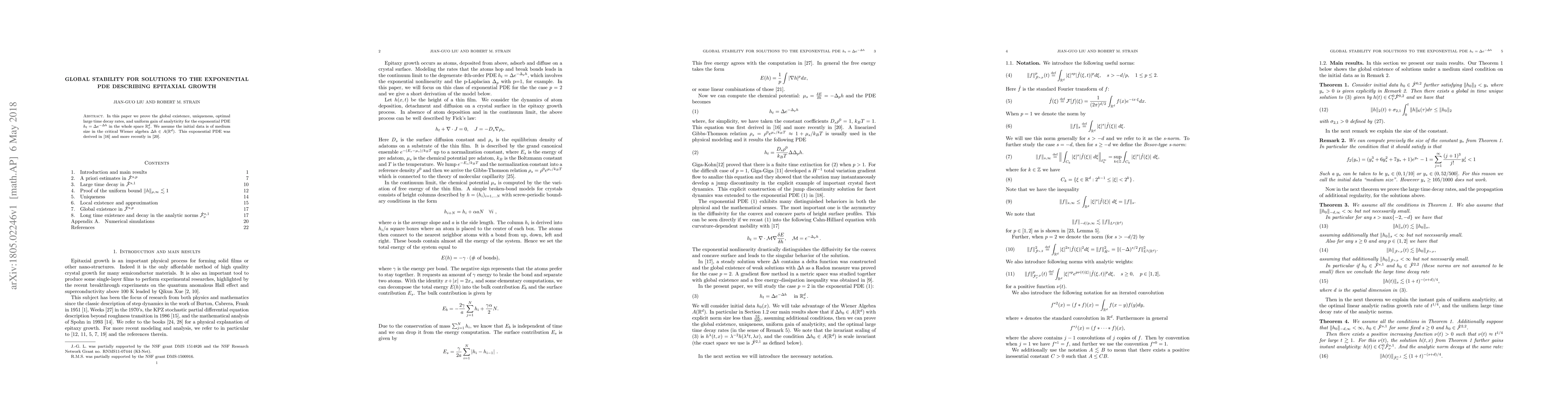 In this paper we prove the global existence, uniqueness, optimal large time decay rates, and uniform gain of analyticity for the exponential PDE $h_t=\Delta e^{-\Delta h}$ in the whole space $\mathbb{R}^d_x$. We assume the initial data is of medium size in the critical Wiener algebra $\Delta h \in A(\mathbb{R}^d)$. This exponential PDE was derived in (Krug, Dobbs, and Majaniemi in 1995) and more recently in (Marzuola and Weare 2013).
