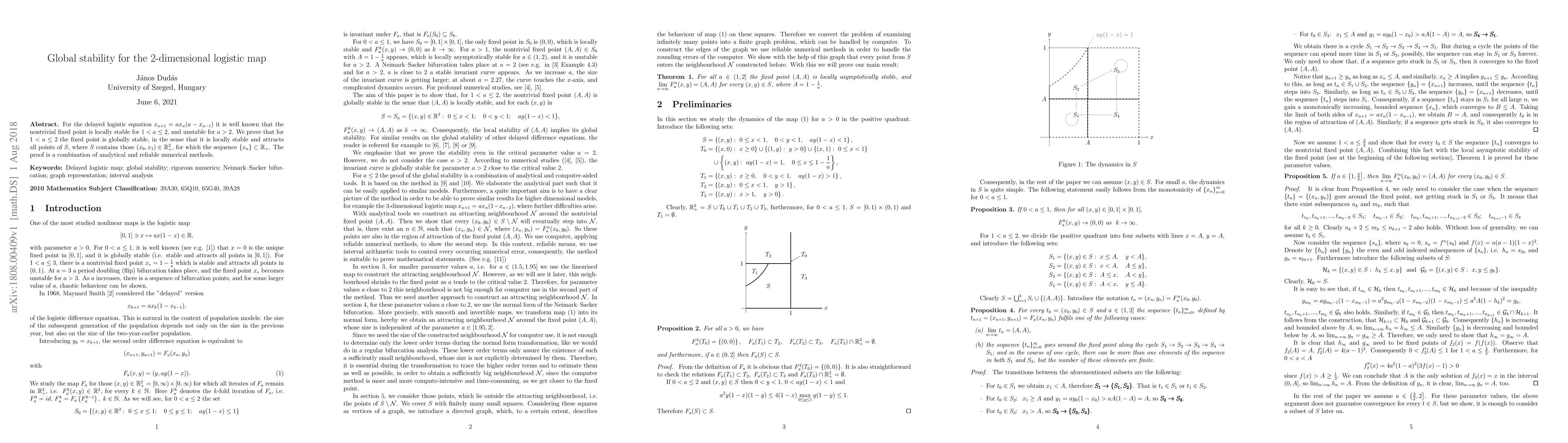 For the delayed logistic equation $x_{n+1} = a x_n (a-x_{n-1})$ it is well known that the nontrivial fixed point is locally stable for $12$. We prove that for $1