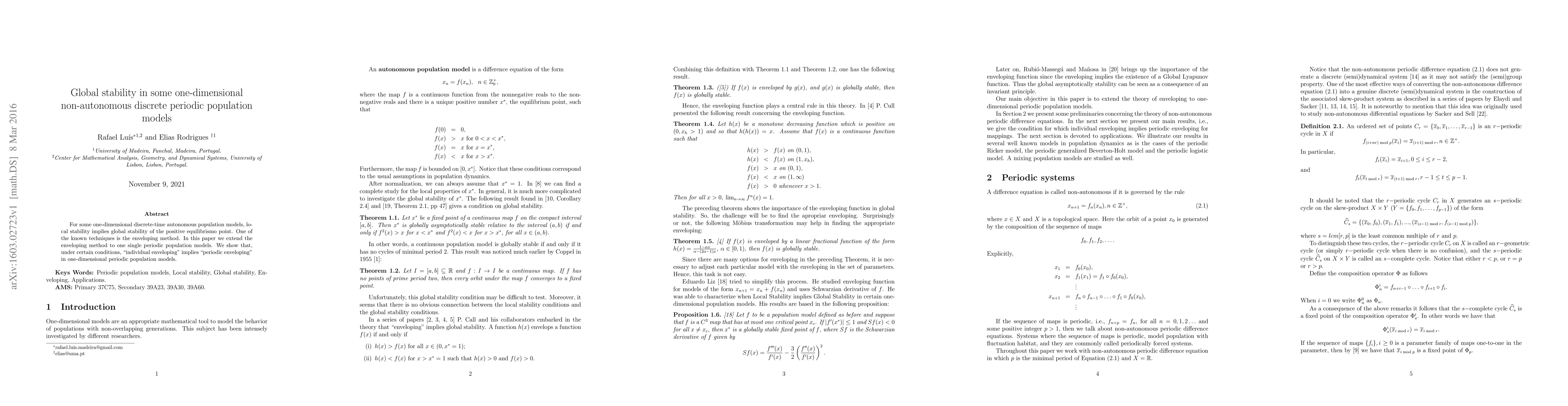 For some one-dimensional discrete-time autonomous population models, local stability implies global stability of the positive equilibrismo point. One of the known techniques is the enveloping method. In this paper we extend the enveloping method to one single periodic population models. We show that, under certain conditions, "individual enveloping" implies "periodic enveloping" in one-dimensional periodic population models.
