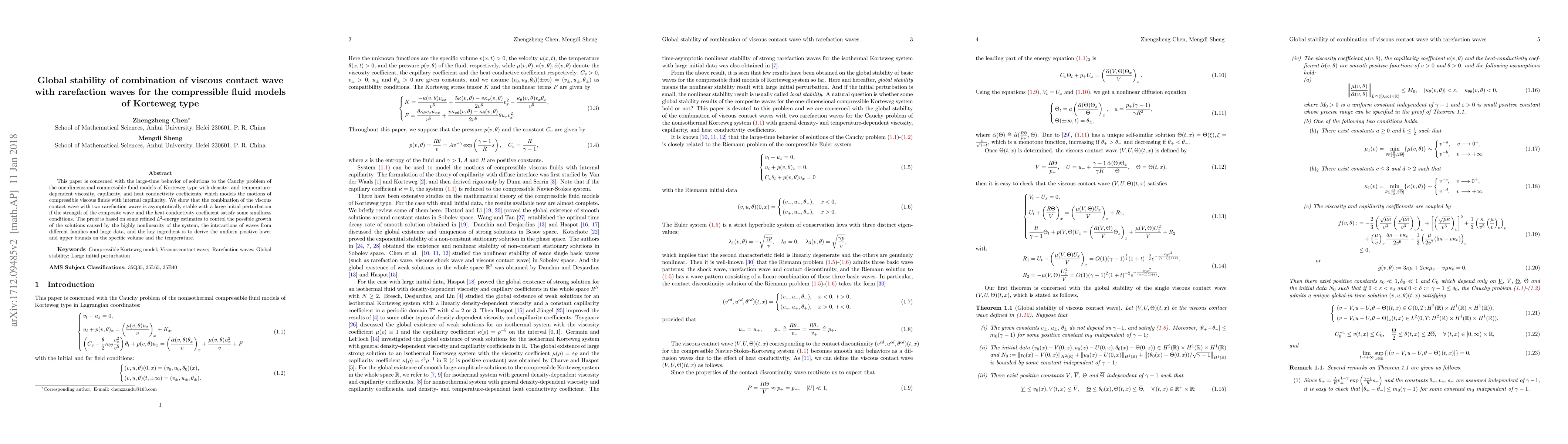 A research paper investigates the stability of a specific wave pattern in compressible fluid models, showing that it remains stable even with large initial perturbations under certain conditions.