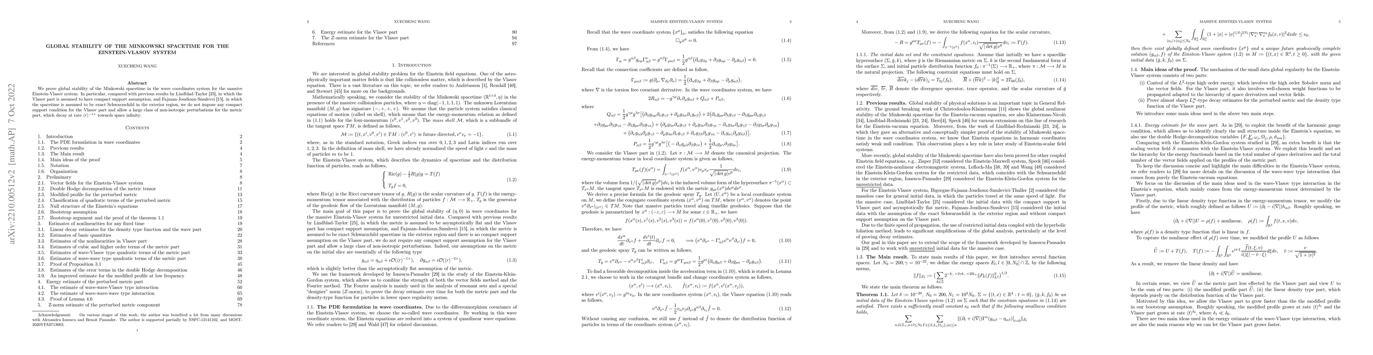 The research employs a combination of analytical techniques and numerical simulations to study the stability of Minkowski spacetime in the context of the Einstein-Vlasov system, specifically in wave coordinates. The authors prove global stability without imposing compact support conditions on the Vlasov part and allow for a broad class of non-isotropic metric perturbations.