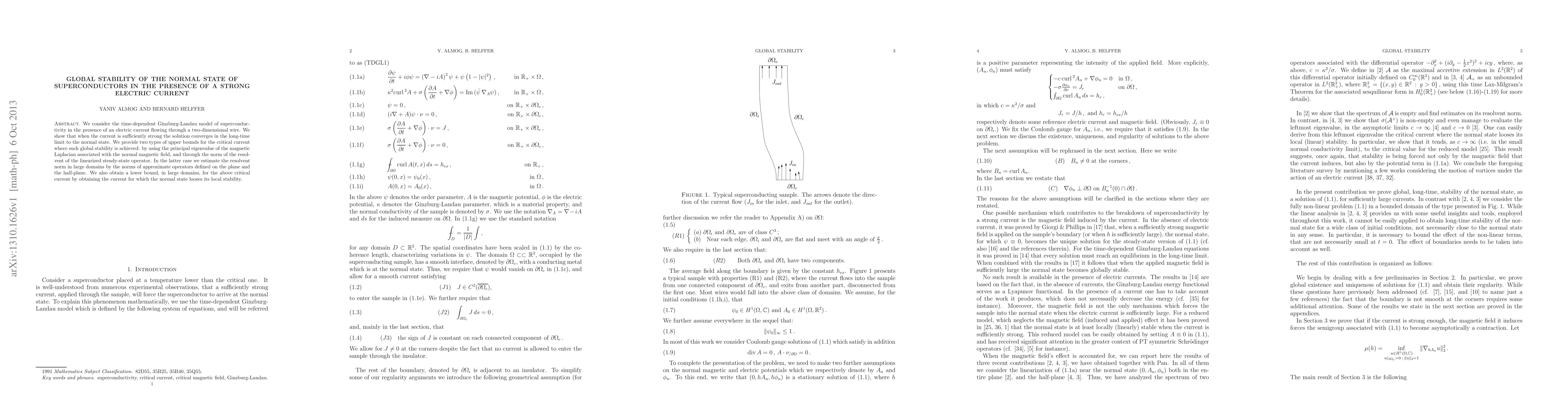 We consider the time-dependent Ginzburg-Landau model of superconductivity in the presence of an electric current flowing through a two-dimensional wire. We show that when the current is sufficiently strong the solution converges in the long-time limit to the normal state. We provide two types of upper bounds for the critical current where such global stability is achieved: by using the principal eigenvalue of the magnetic Laplacian associated with the normal magnetic field, and through the norm of the resolvent of the linearized steady-state operator. In the latter case we estimate the resolvent norm in large domains by the norms of approximate operators defined on the plane and the half-plane. We also obtain a lower bound, in large domains, for the above critical current by obtaining the current for which the normal state looses its local stability.