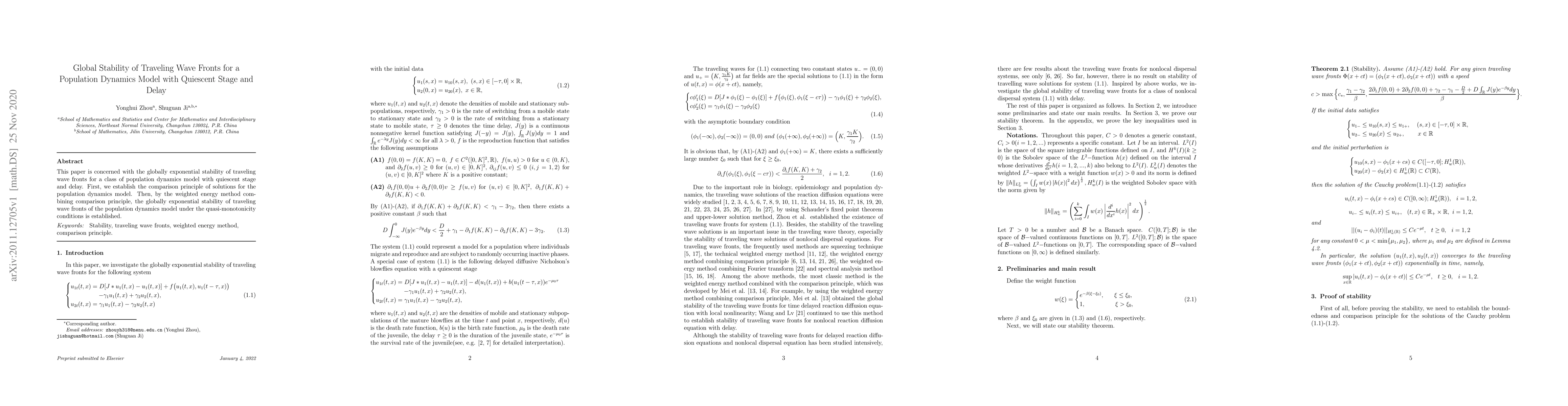 This paper is concerned with the globally exponential stability of traveling wave fronts for a class of population dynamics model with quiescent stage and delay. First, we establish the comparison principle of solutions for the population dynamics model. Then, by the weighted energy method combining comparison principle, the globally exponential stability of traveling wave fronts of the population dynamics model under the quasi-monotonicity conditions is established.